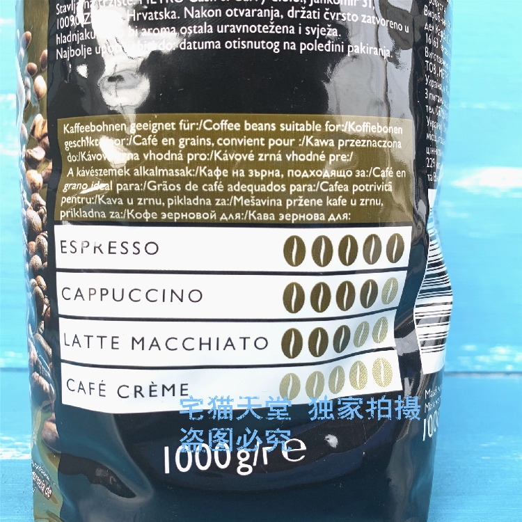 麦德龙代购意大利原装进口RIOBA瑞吧金装咖啡豆1kg深度烘焙拼配