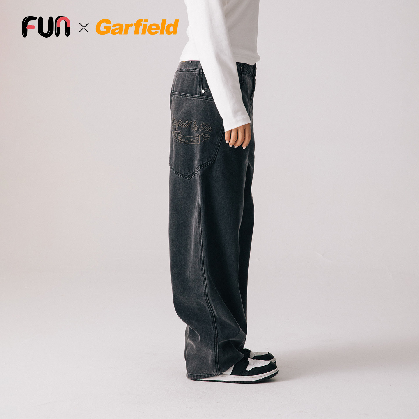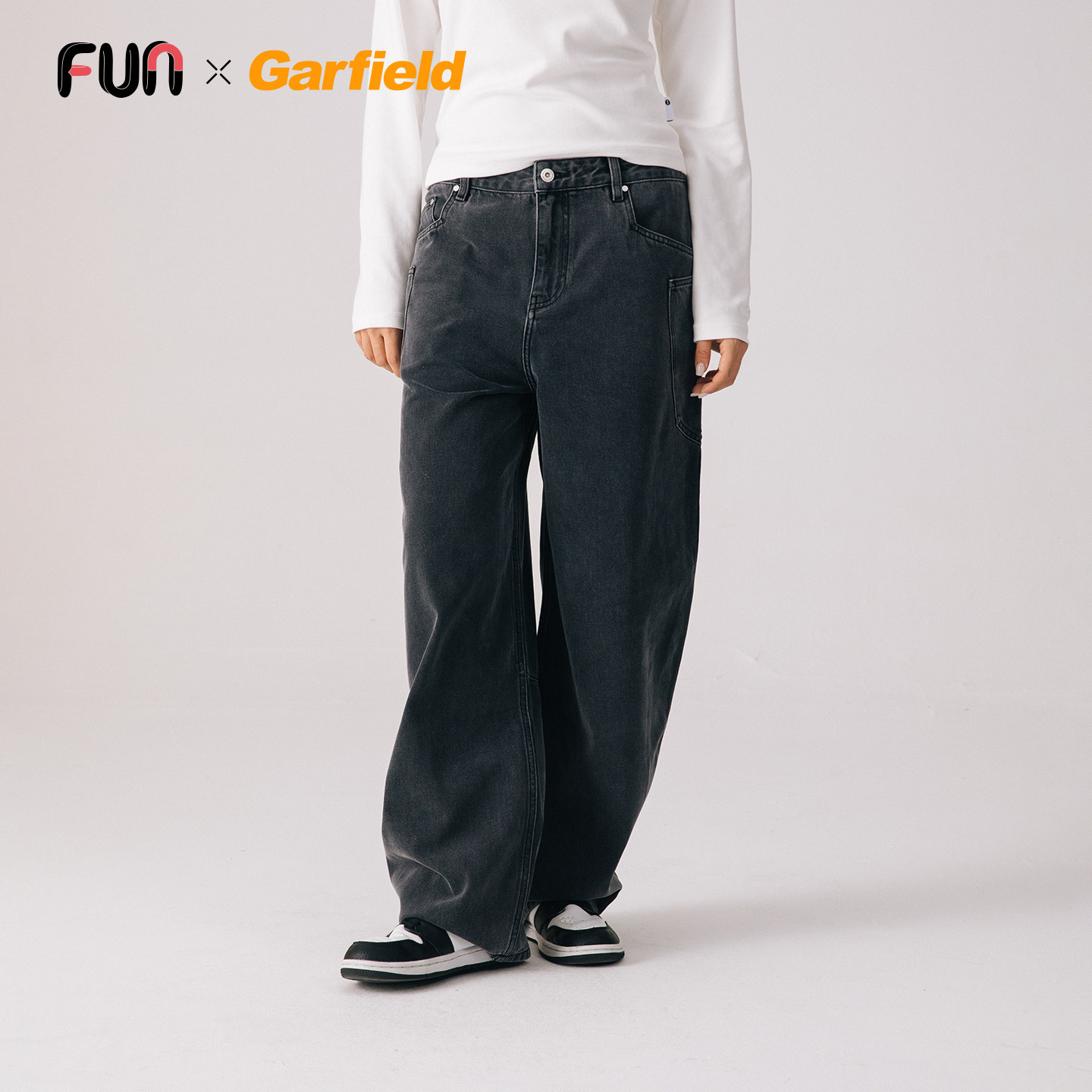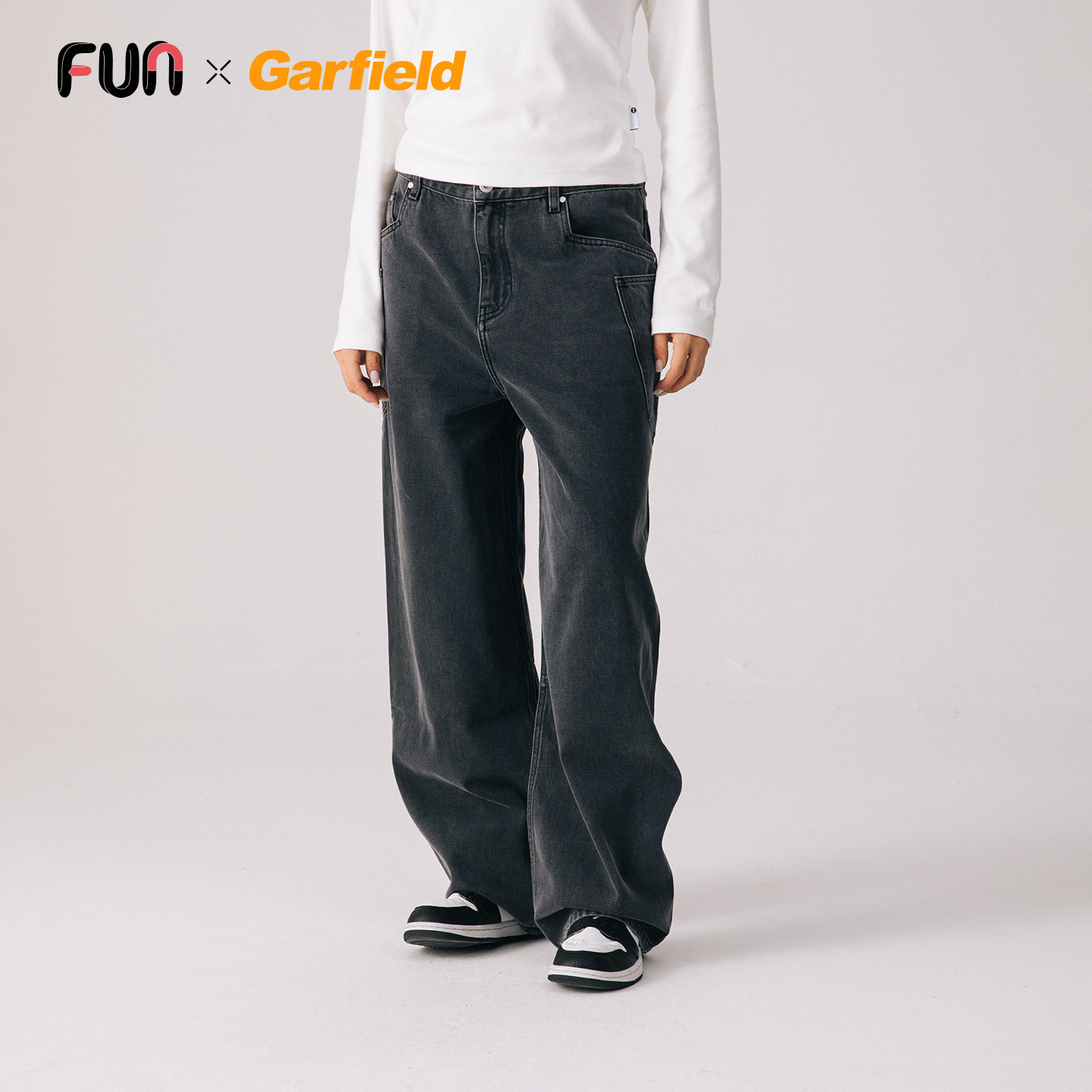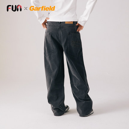 Fun2026春季商场同款加菲猫联名做旧洗水工装牛仔裤子男女同款