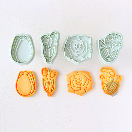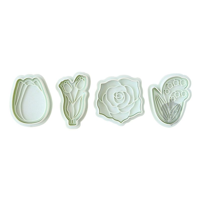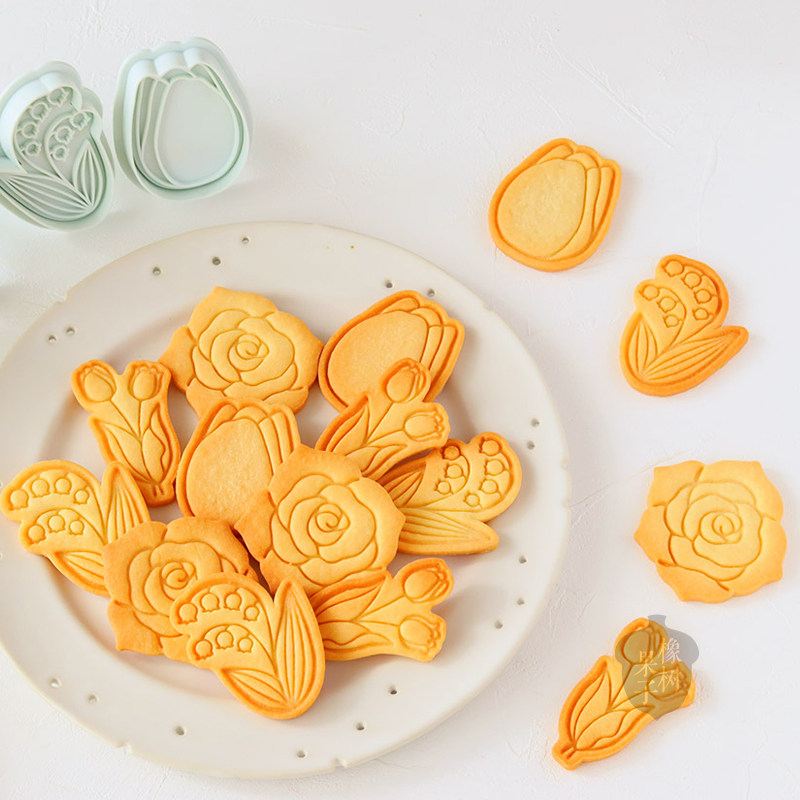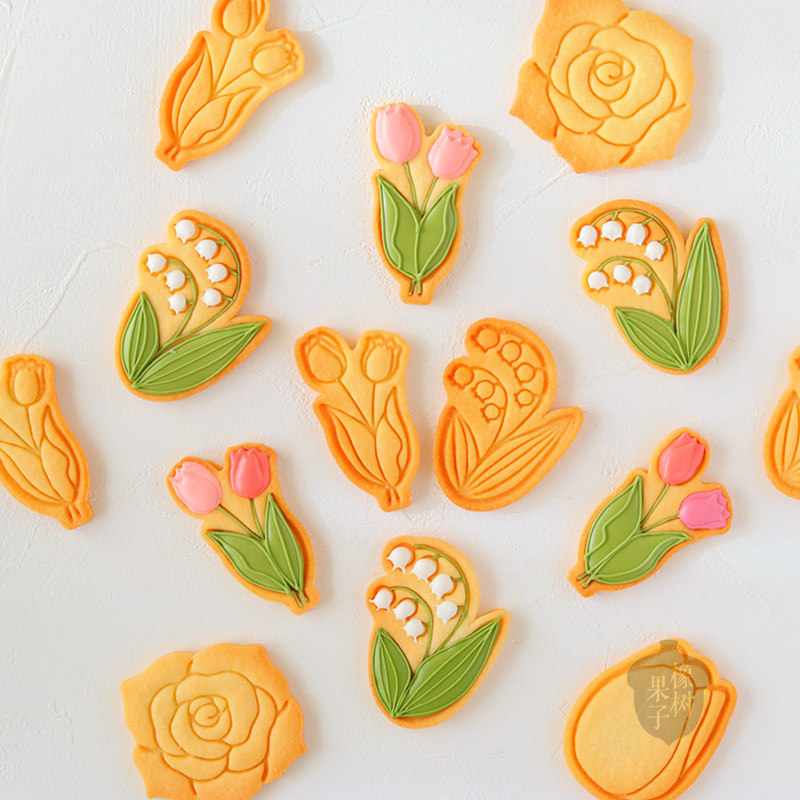 新款母亲节郁金香手压式饼干模情人节玫瑰铃兰花翻糖糖霜烘焙工具
