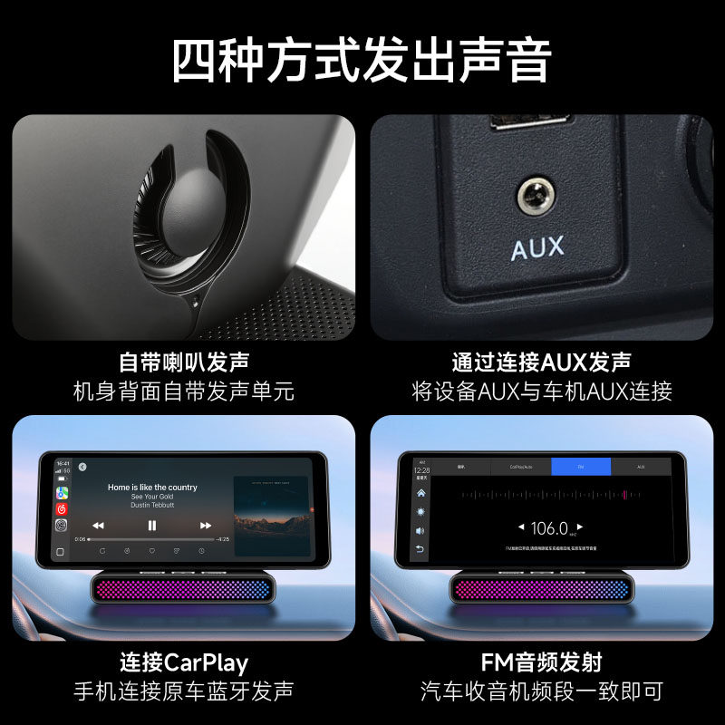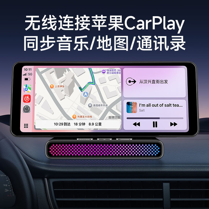 九音无线carplay便携屏式车载智慧屏中控台行车记录导航仪