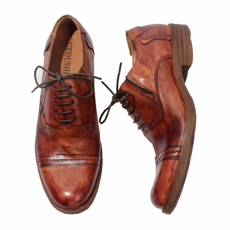 GDS复古圆头皮鞋男鞋韩版潮流百搭鞋子厚底潮鞋复古商务休闲鞋男