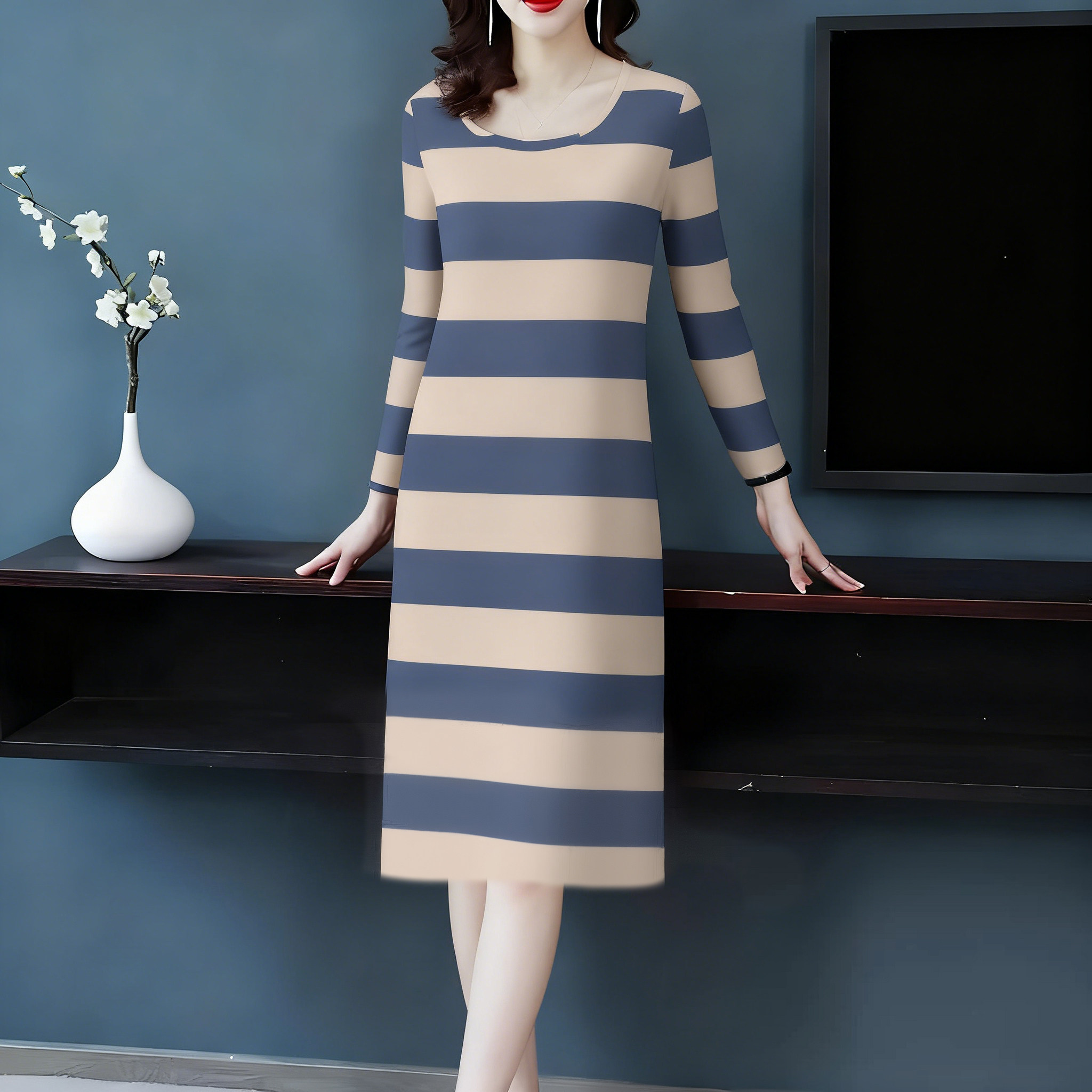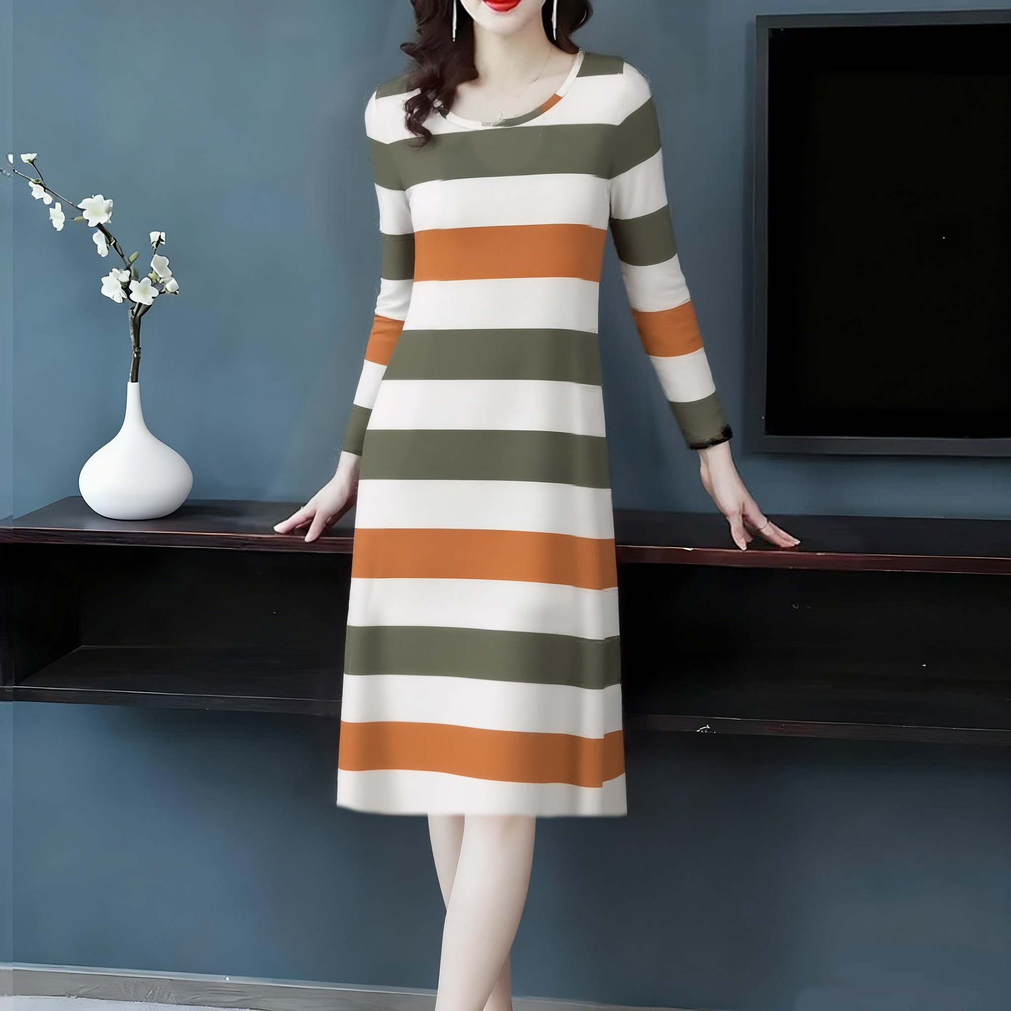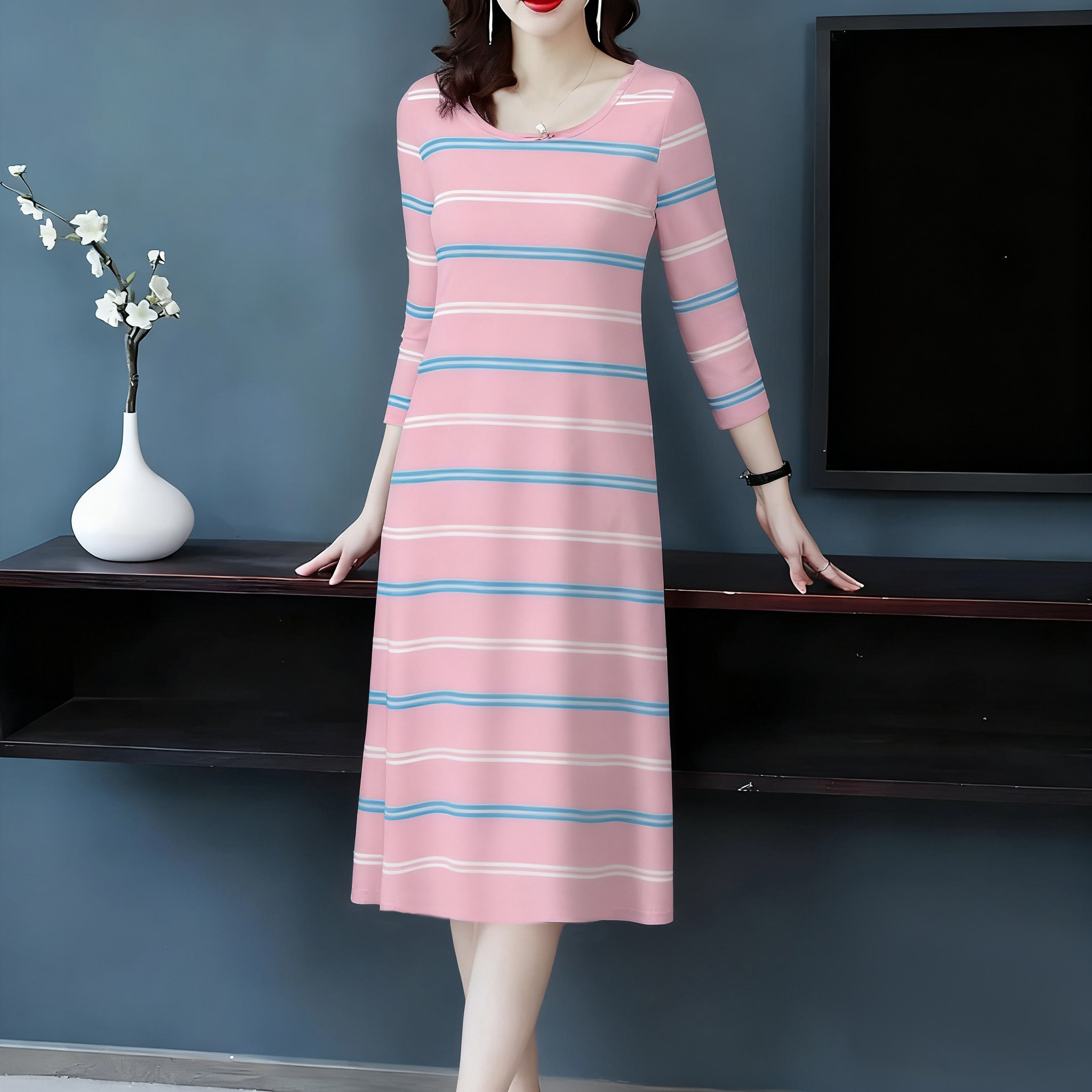 清仓中年中老年人妈妈春秋季长袖睡裙女连衣裙秋冬长裙休闲可外穿