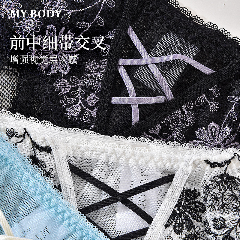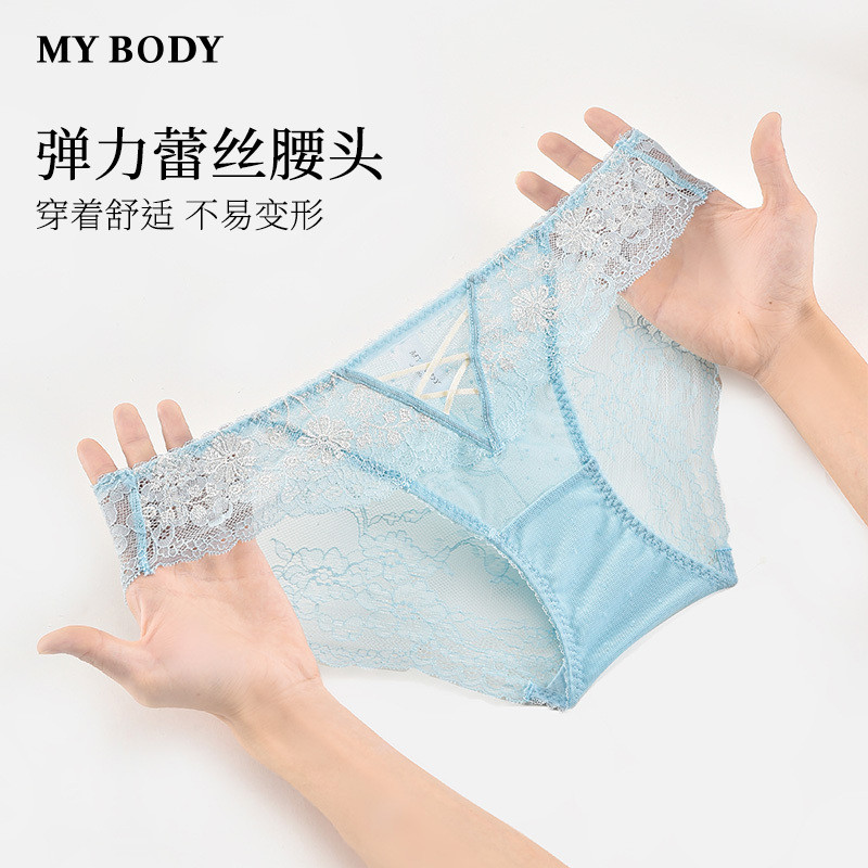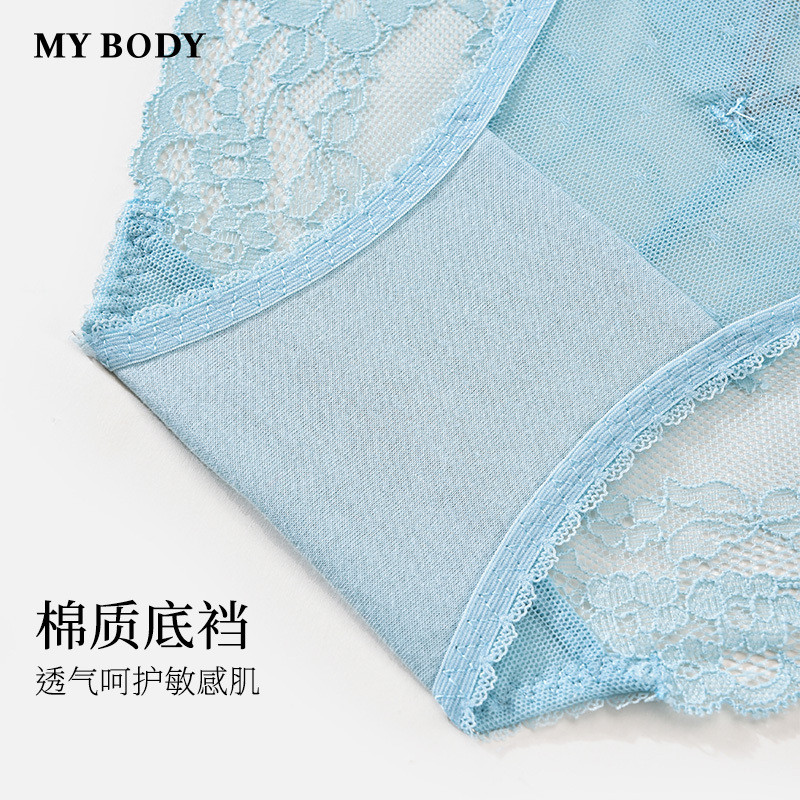 3件199|商场同款MYBODY新款内裤女刺绣法式蕾丝性感中低腰三角裤