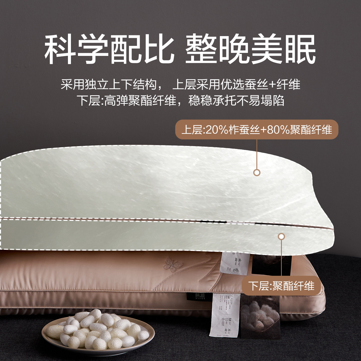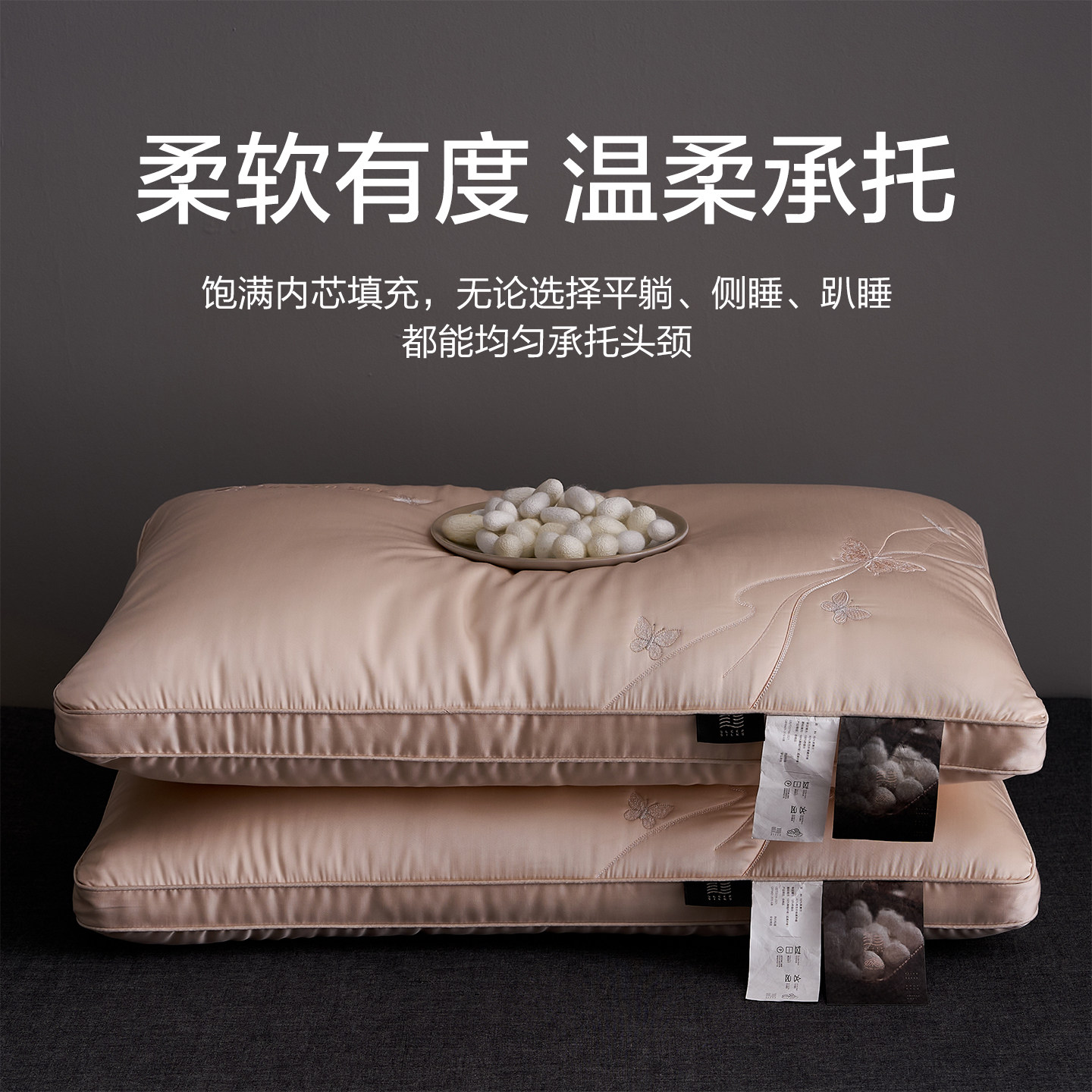 五星酒店专用蚕丝护颈椎枕头睡眠家用助成人不塌陷美肤枕芯整头对