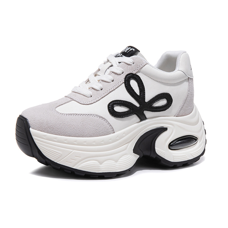 真皮拼色厚底气垫内增高老爹鞋女2025秋真皮百搭小个子运动休闲鞋