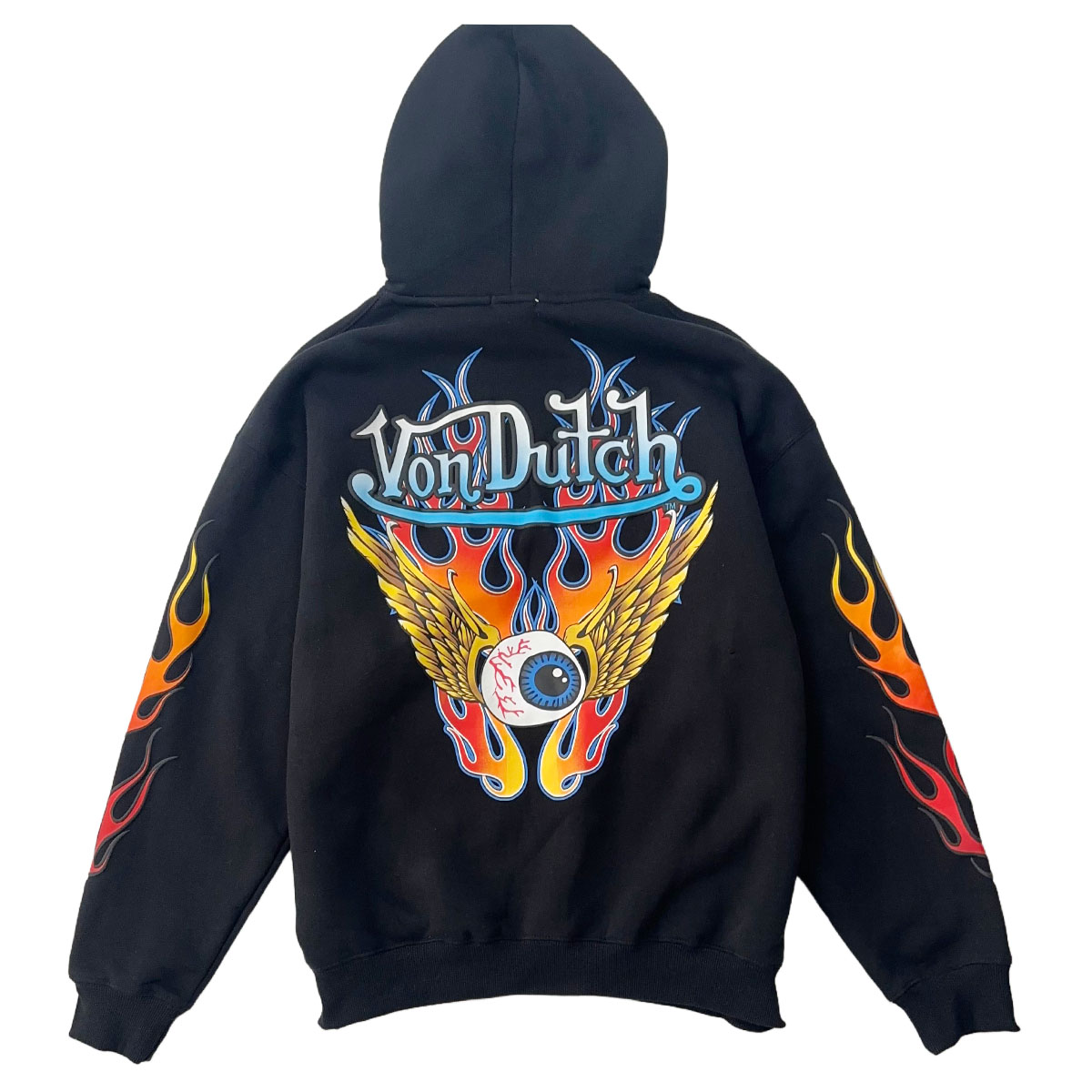 纯原复古女款机车风连帽卫衣抓绒满印火焰字母