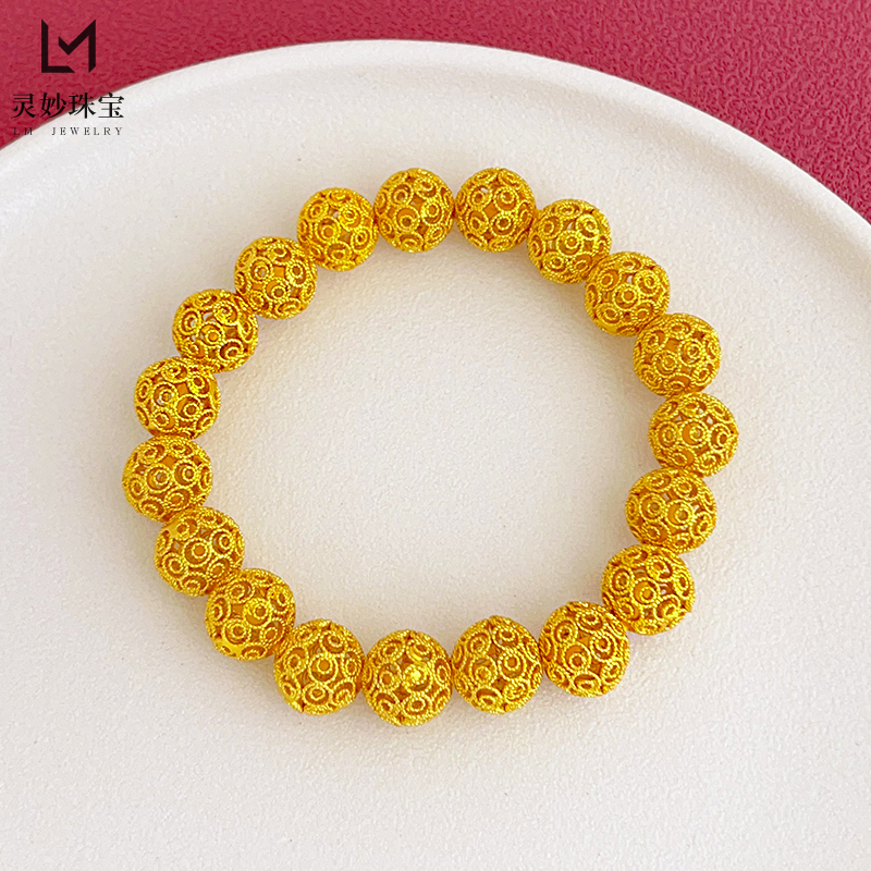 久不掉色古法沙金镂空花丝圆珠隔珠diy配件散珠手链项链手工串珠