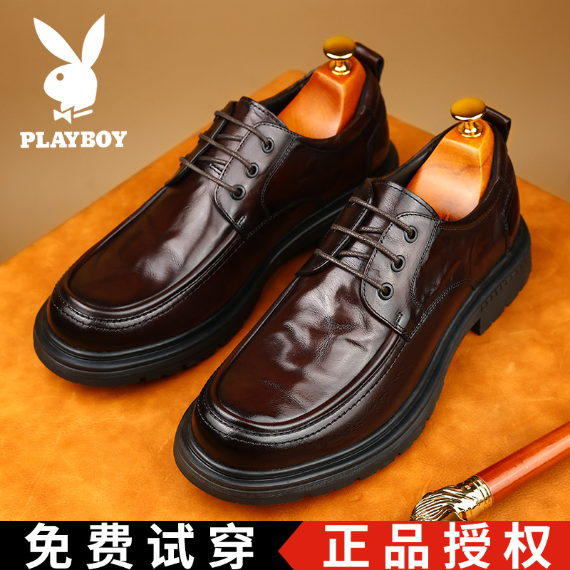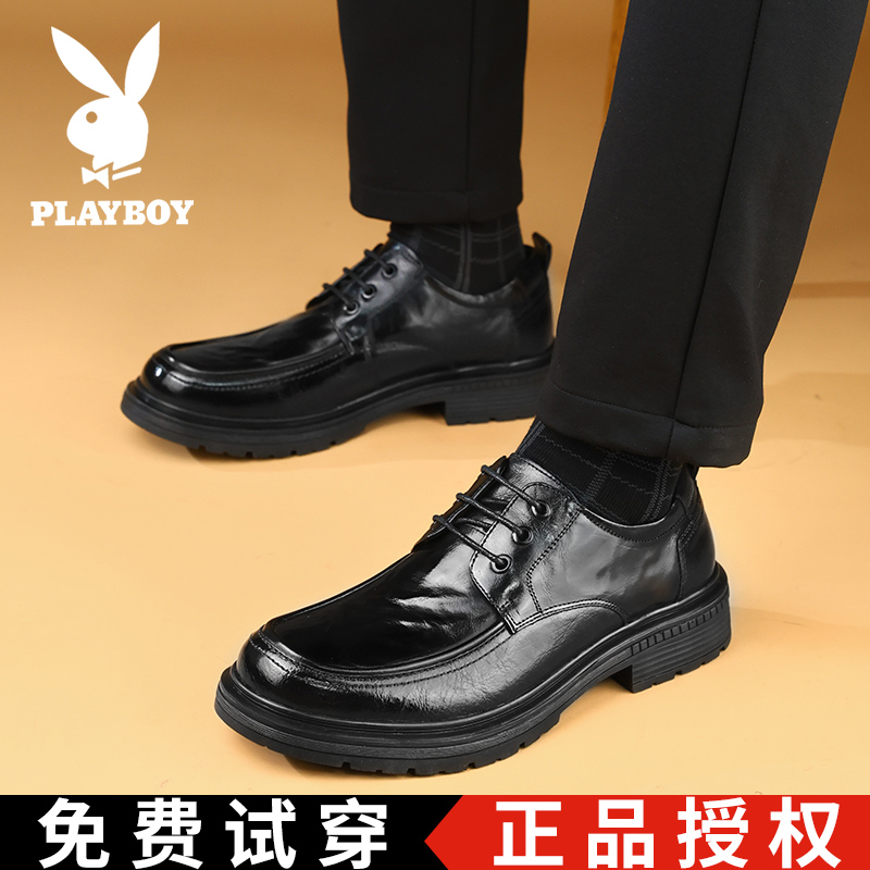 花花公子男鞋2025新款真皮商务正装皮鞋男士英伦风休闲结婚新郎鞋
