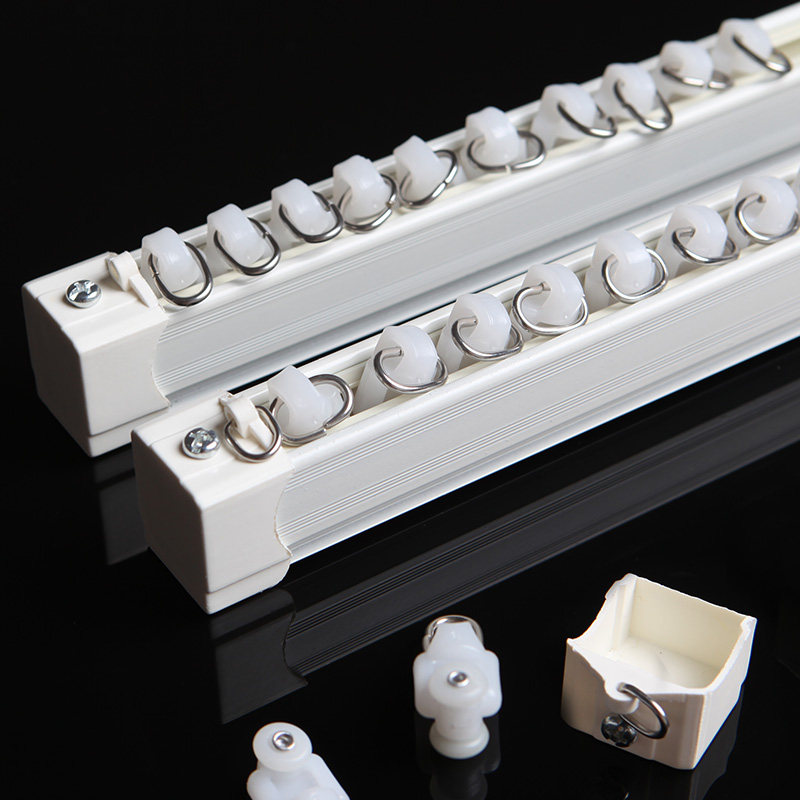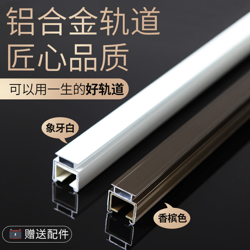 加厚铝合金窗帘轨道静音罗马杆窗帘杆单双轨道滑轨滑轮顶装侧装