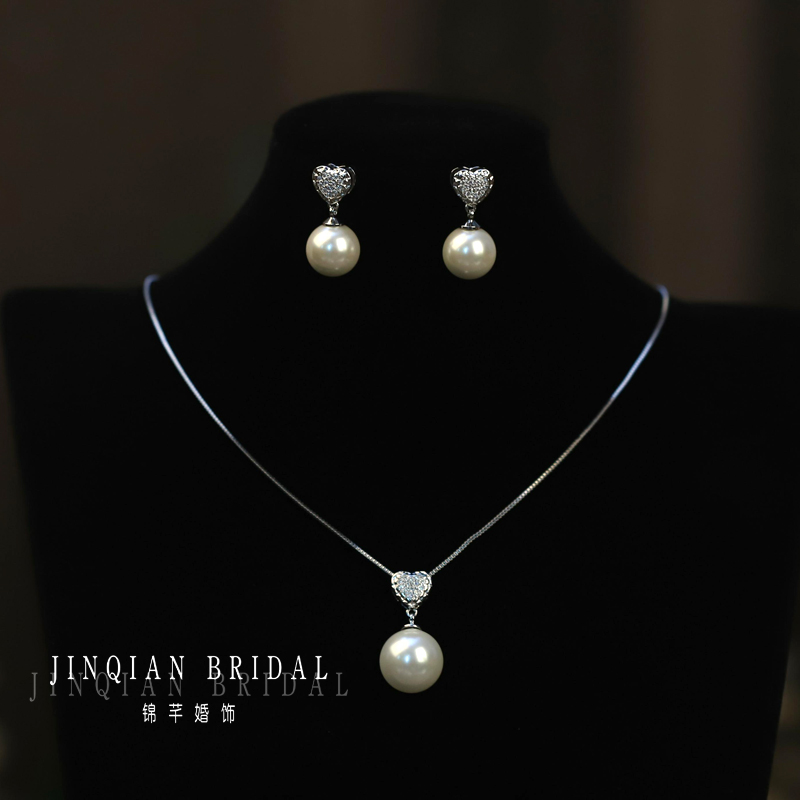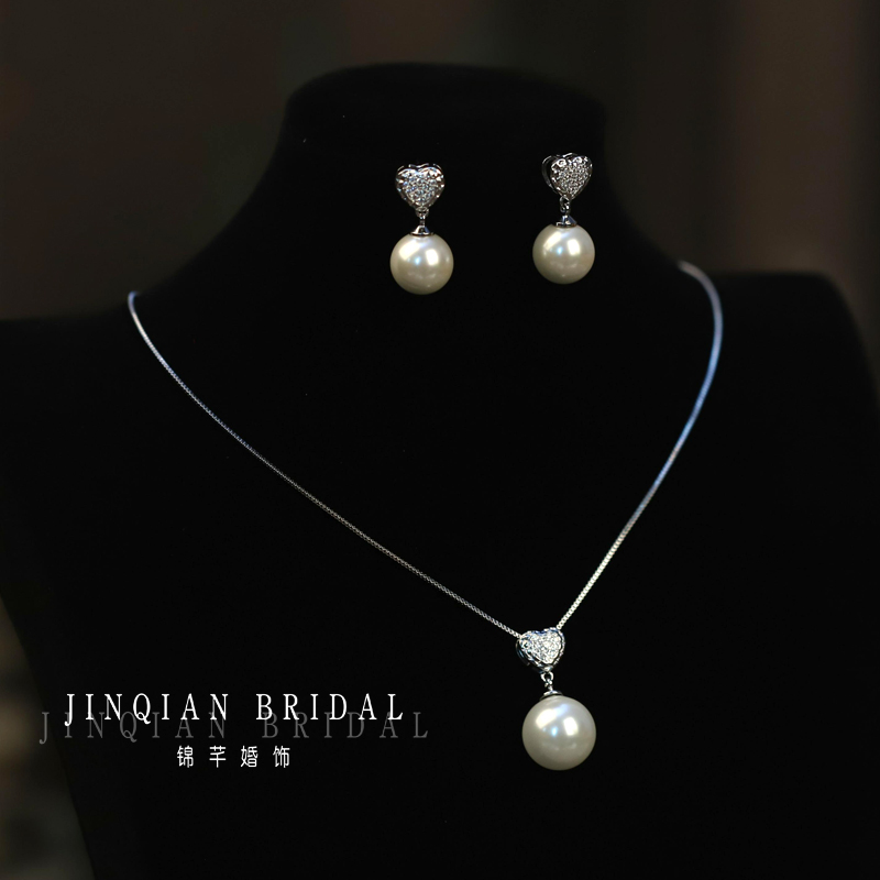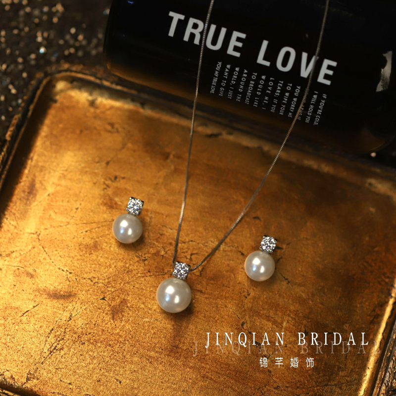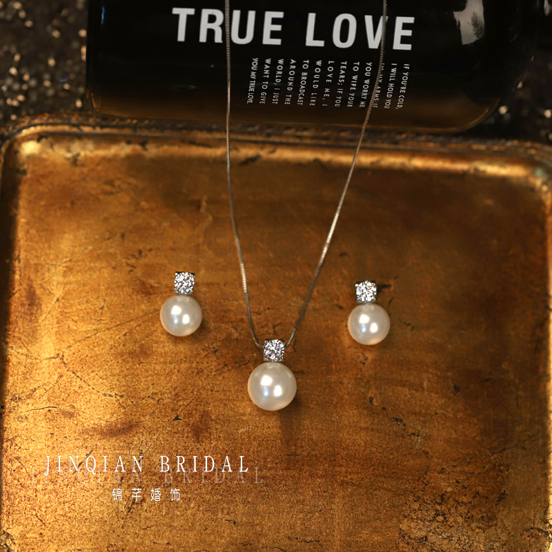 日韩简约锆石珍珠项链闪钻吊坠锁骨链耳钉新娘伴娘礼服婚纱配饰品