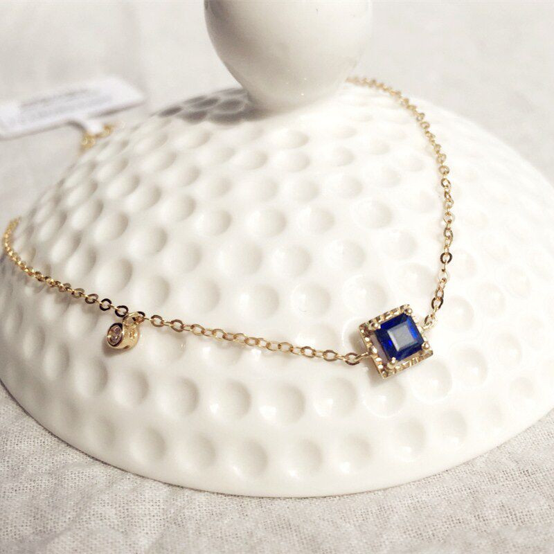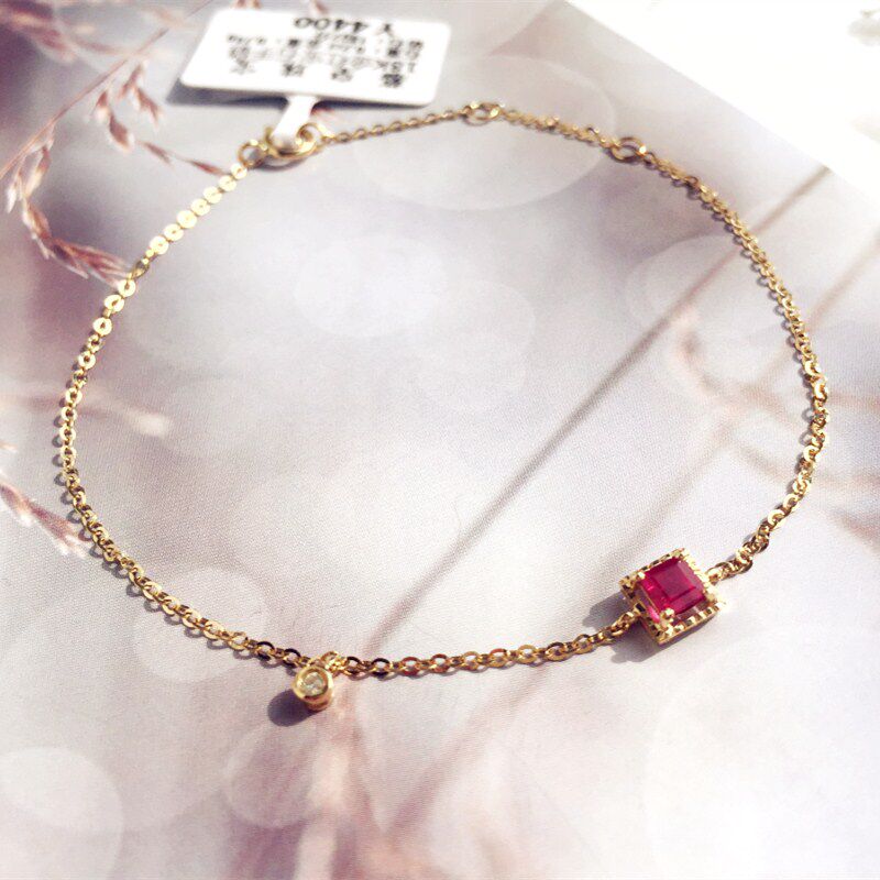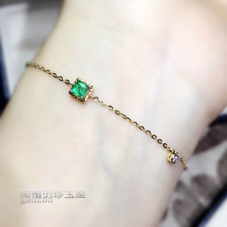 CR-J日系轻奢18K天然祖母绿红蓝宝石小方糖钻石手链优雅精致包邮