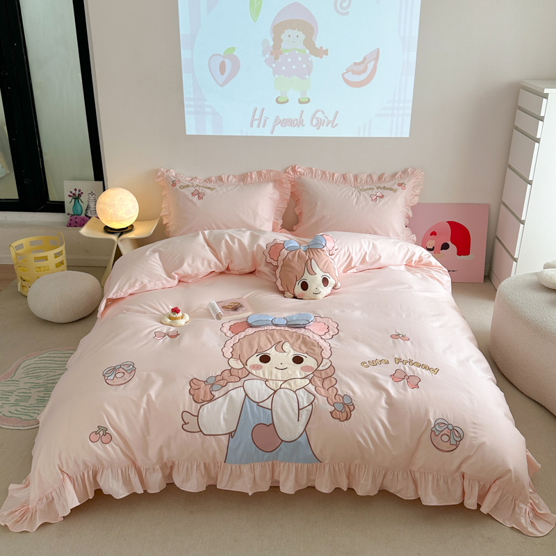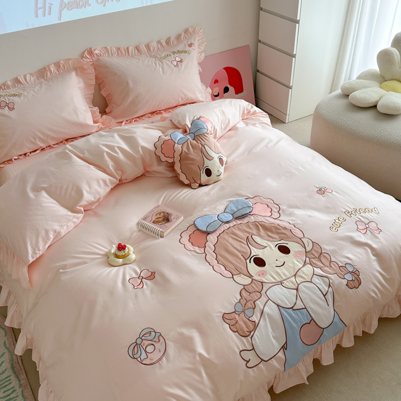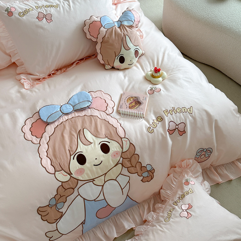 公主 儿童纯棉被套2025新款ins卡通风格全棉新疆棉贴布刺绣四件套
