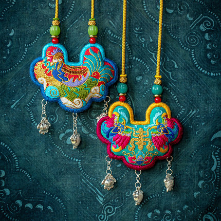 王的手创 平安符刺绣手工diy材料包自绣长命锁周岁礼物挂件银项链