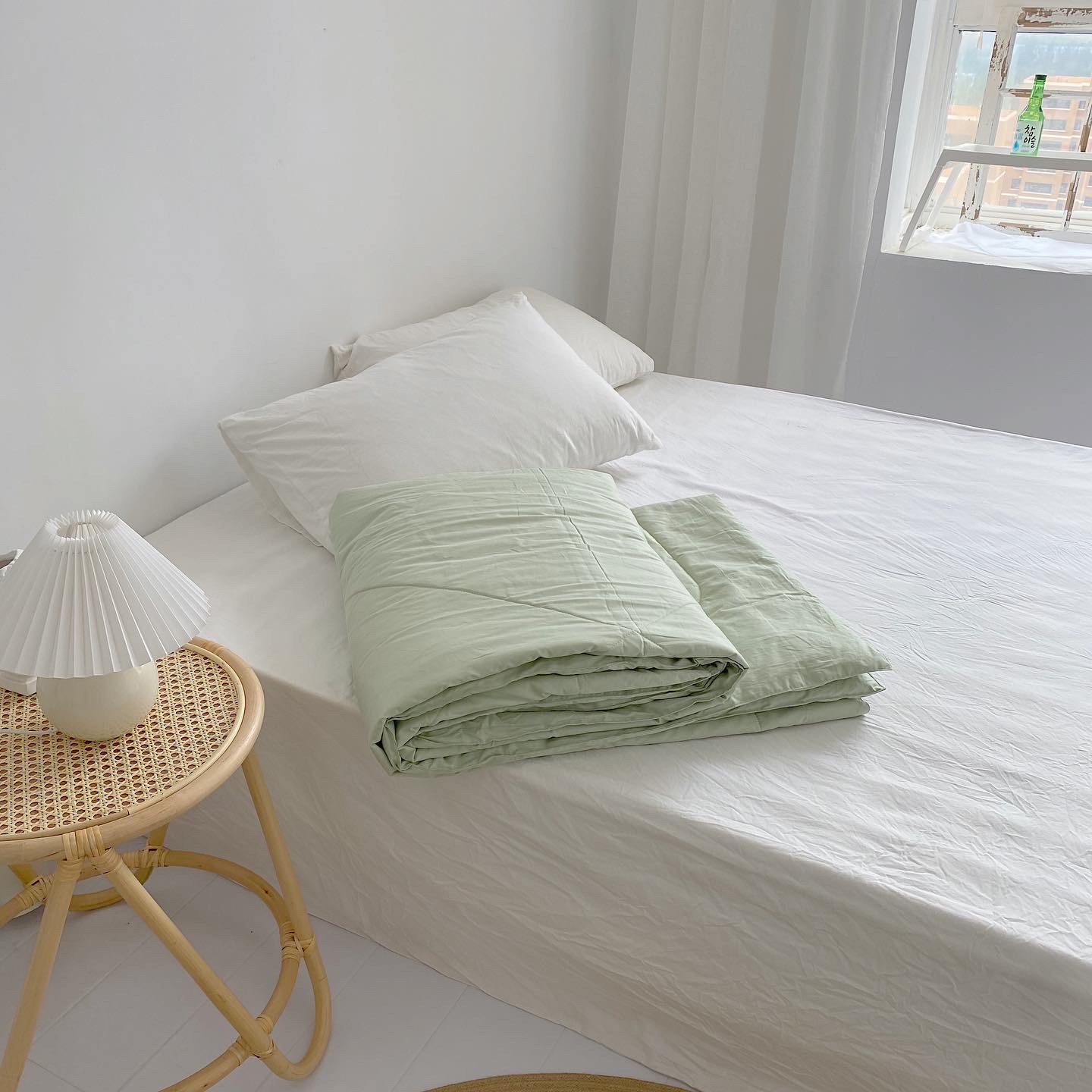 薄荷味夏天!韩国ins清新浅绿全棉夏凉被空调冷气薄被 柔软舒服