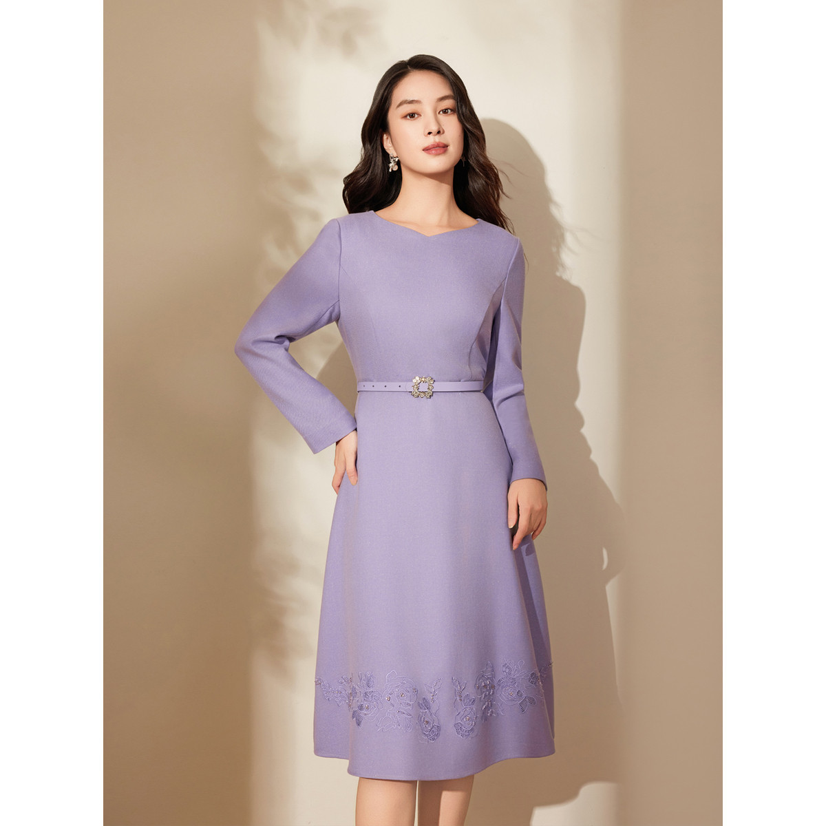 【绛玉枝】BBLLUUEE粉蓝衣橱2025秋冬女装气质雅致镂空绣花连衣裙