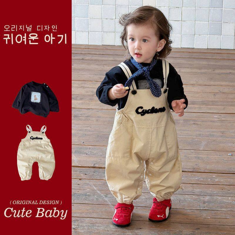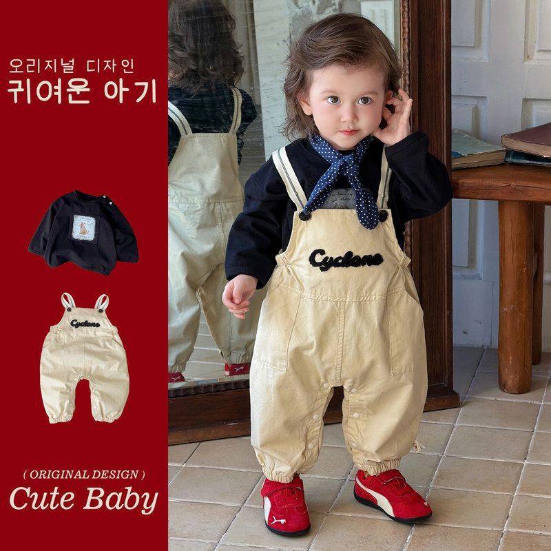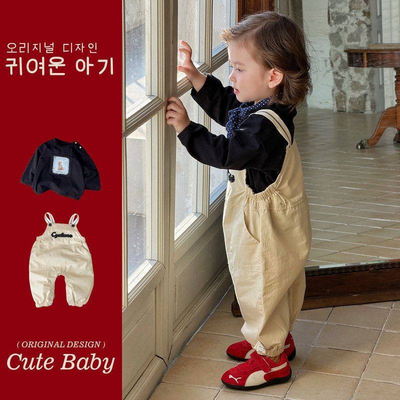 男童小童背带裤套装时髦洋气宝宝衣服分体春装长袖外出服裤子新款