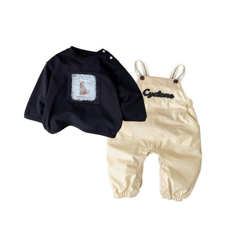 男童春装纯棉洋气背带裤套装