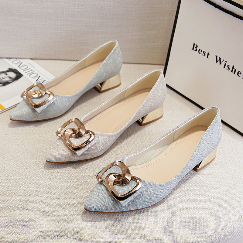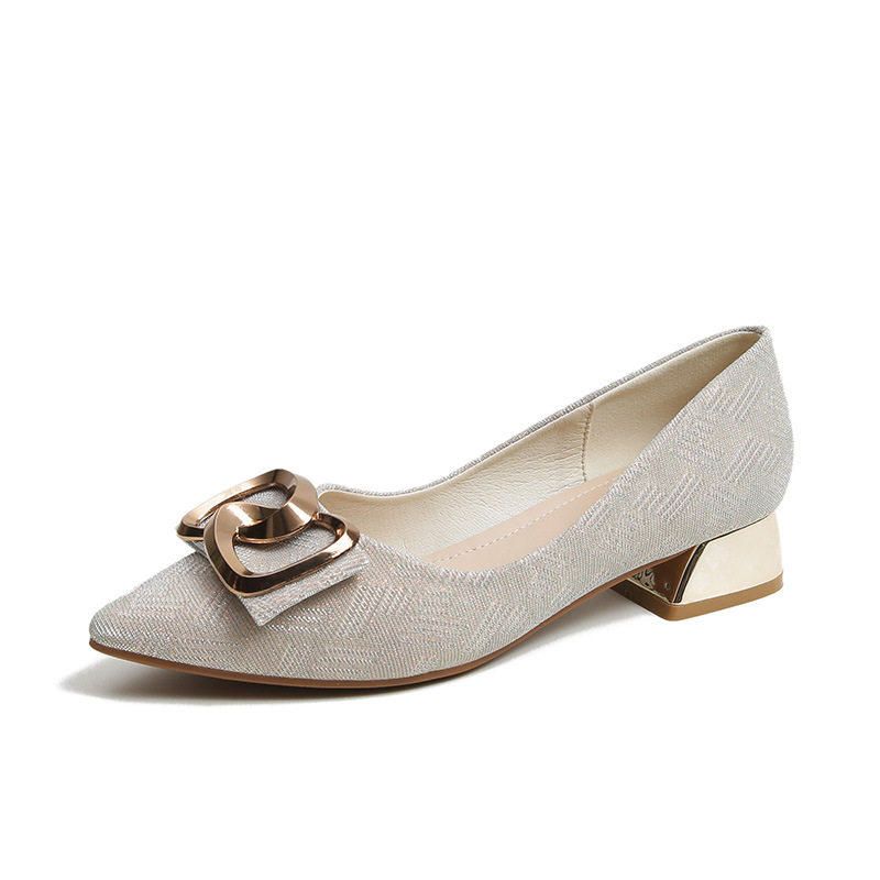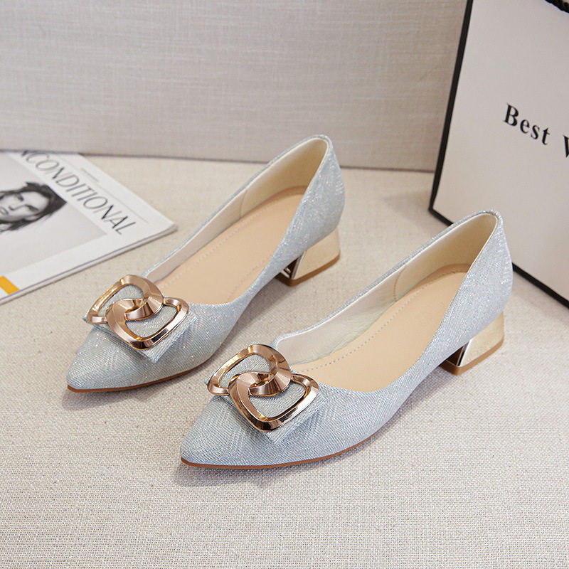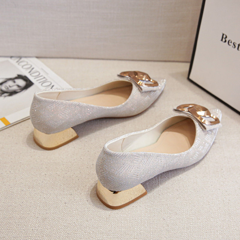 金属方扣中跟女鞋尖头软底3公分粗跟浅口大码40-43单鞋舒适时尚