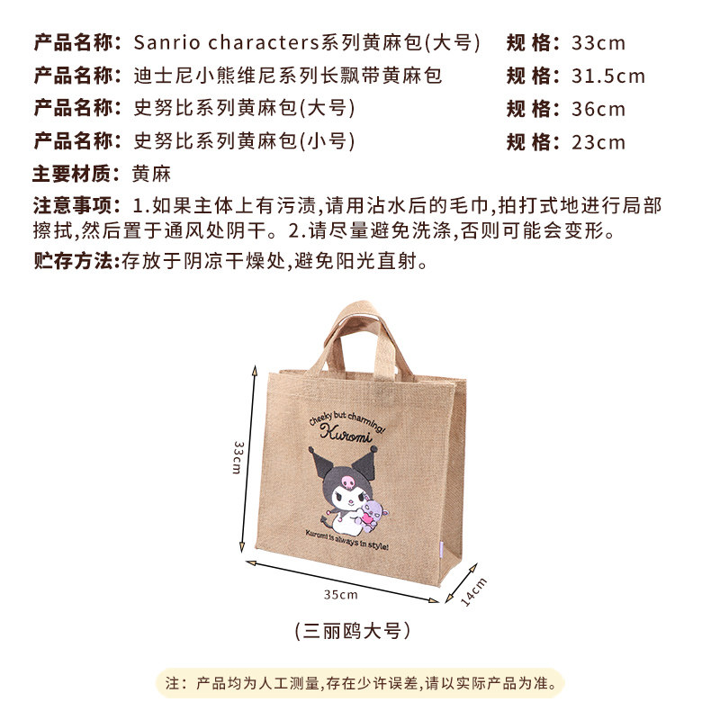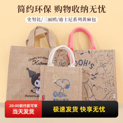 miniso名创优品三丽鸥黄麻手提包可爱小熊维尼购物袋史努比便当袋
