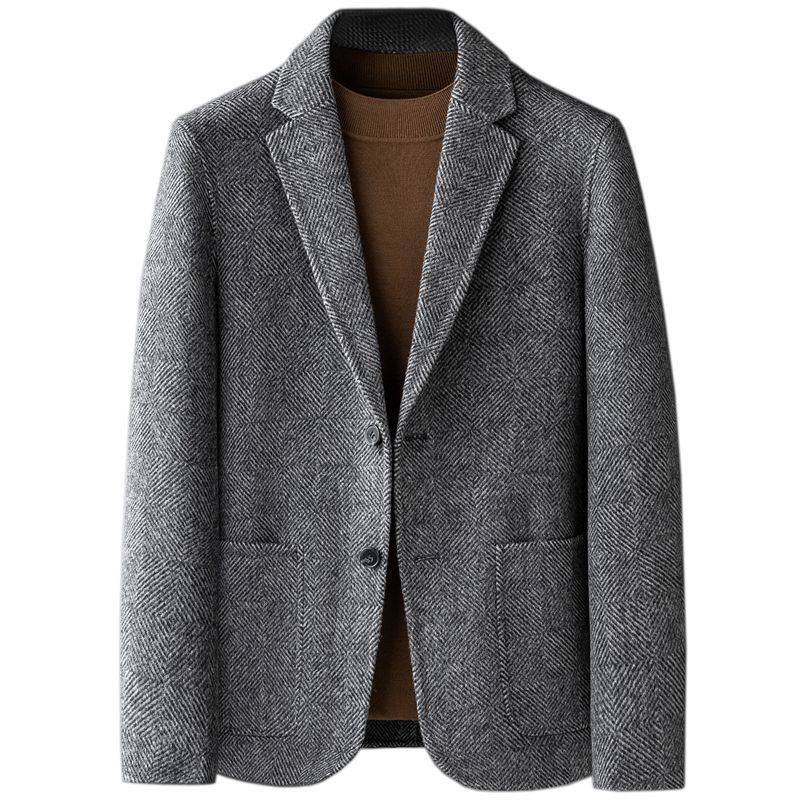 秋冬季上衣加厚休闲西服男士高级感双面毛呢单西外套商务西装潮男
