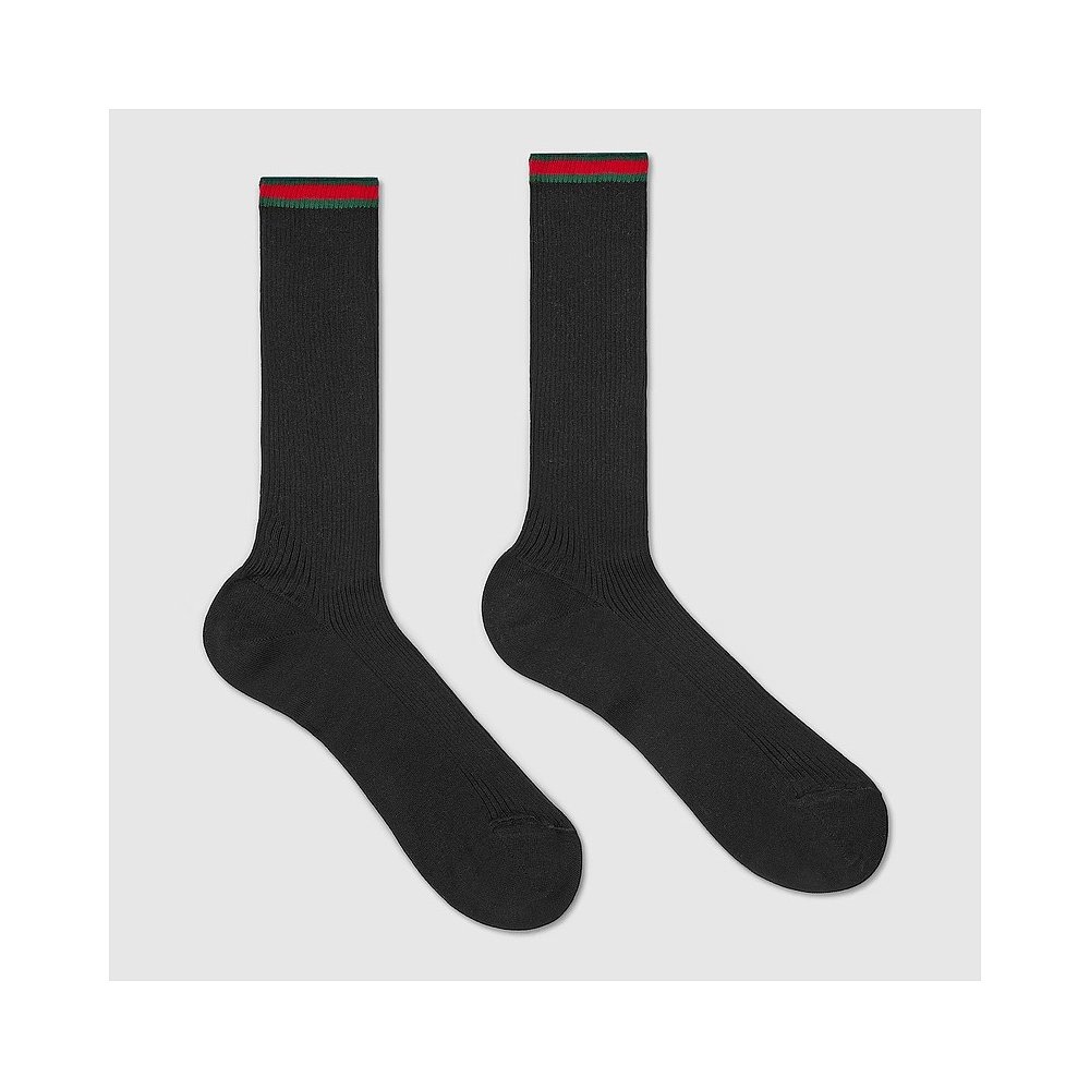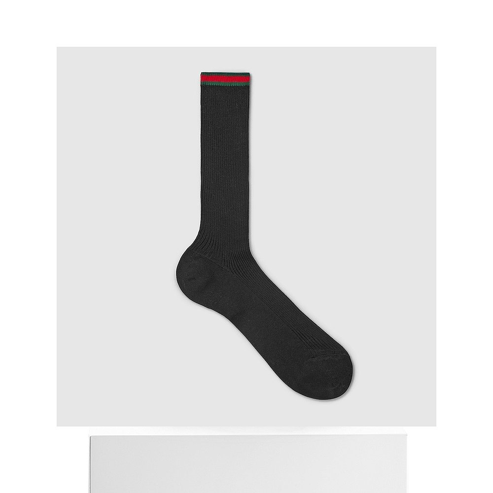 自营欧洲直邮Gucci/古驰 女士黑色棉织带装饰袜子运动