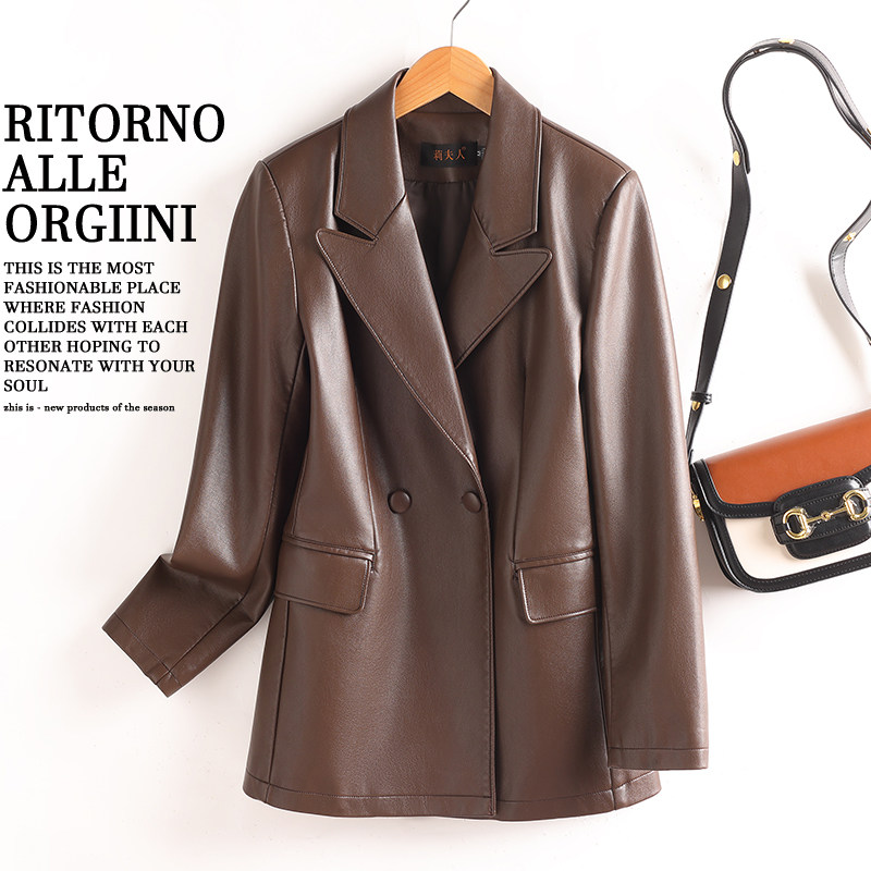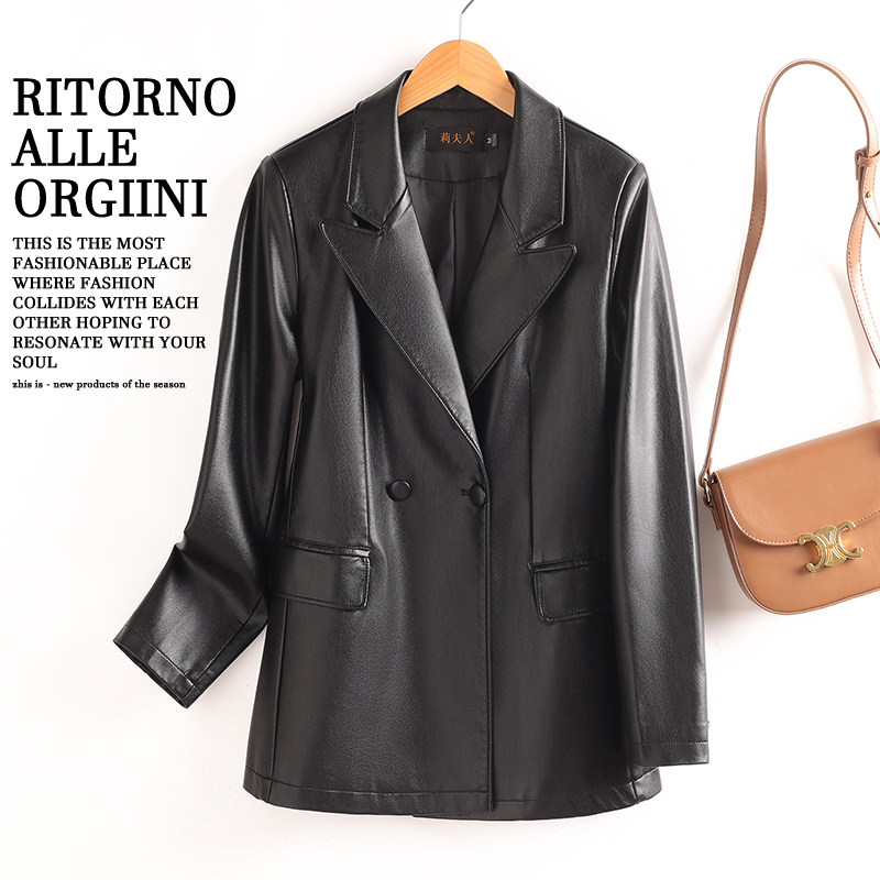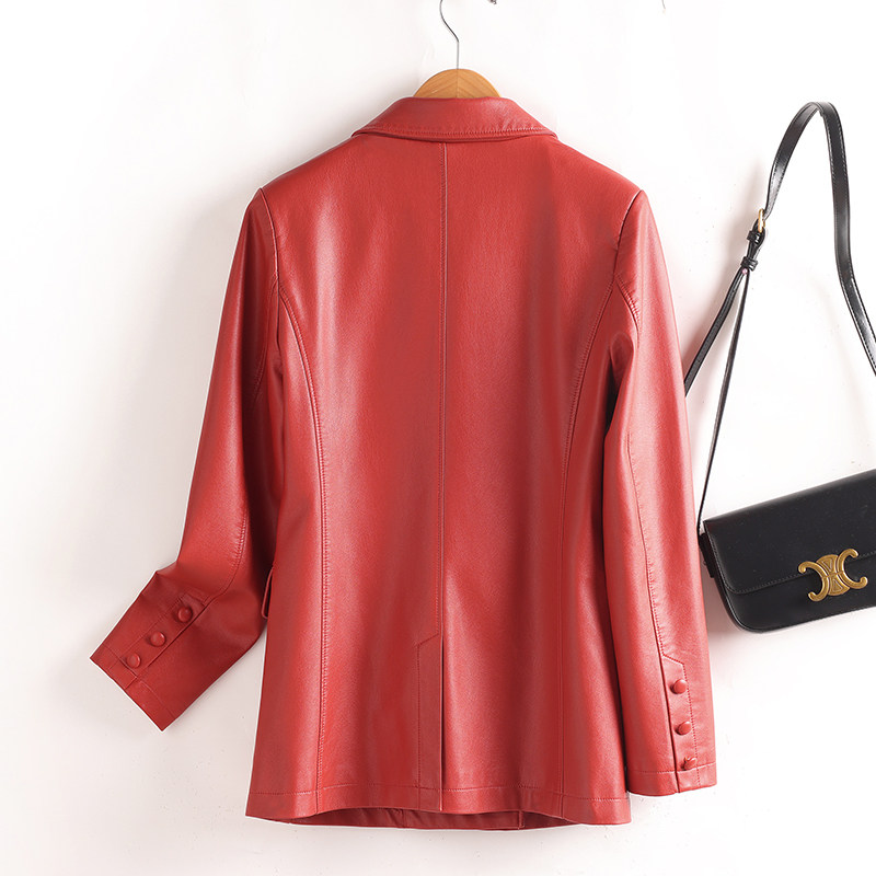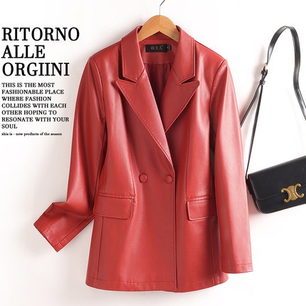 爆款真皮西服女时尚气质夹克外套