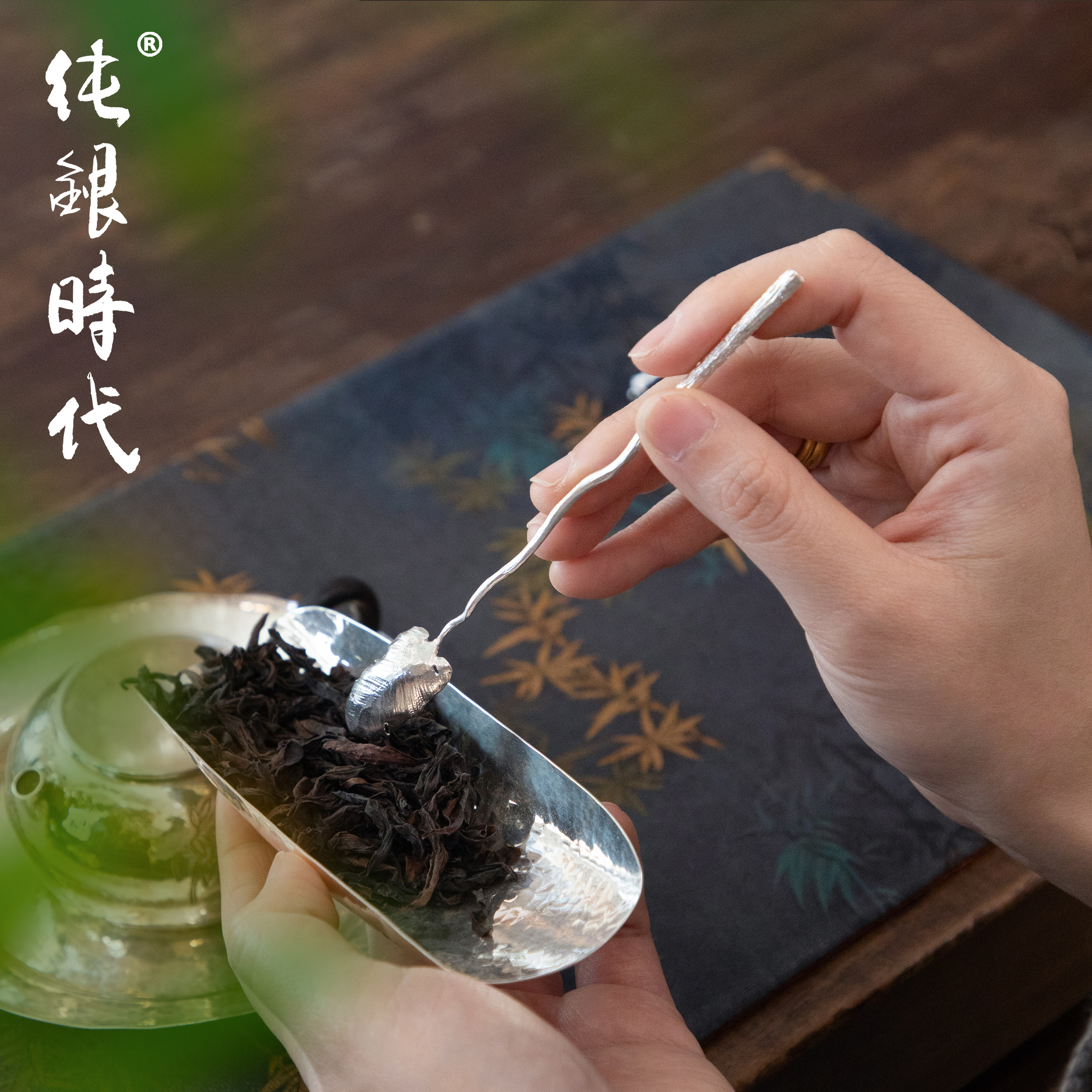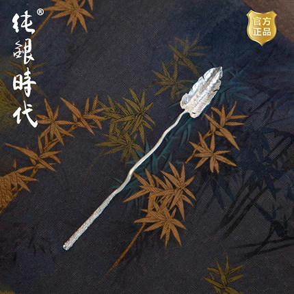 纯银时代 羽毛茶勺茶匙纯银999手工仿生茶拨茶则高档茶具配件送礼