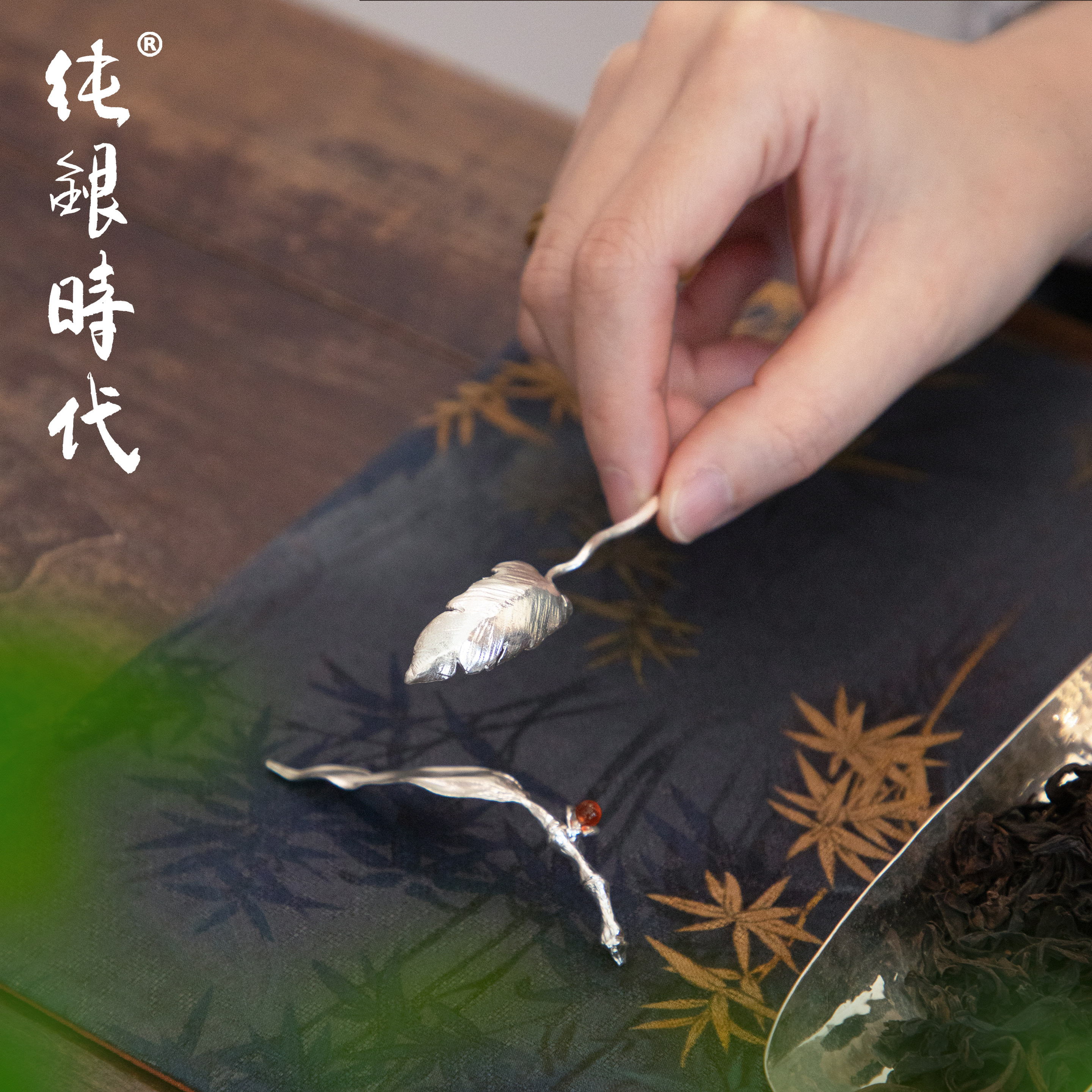 纯银时代手工仿生纯银羽毛茶拨