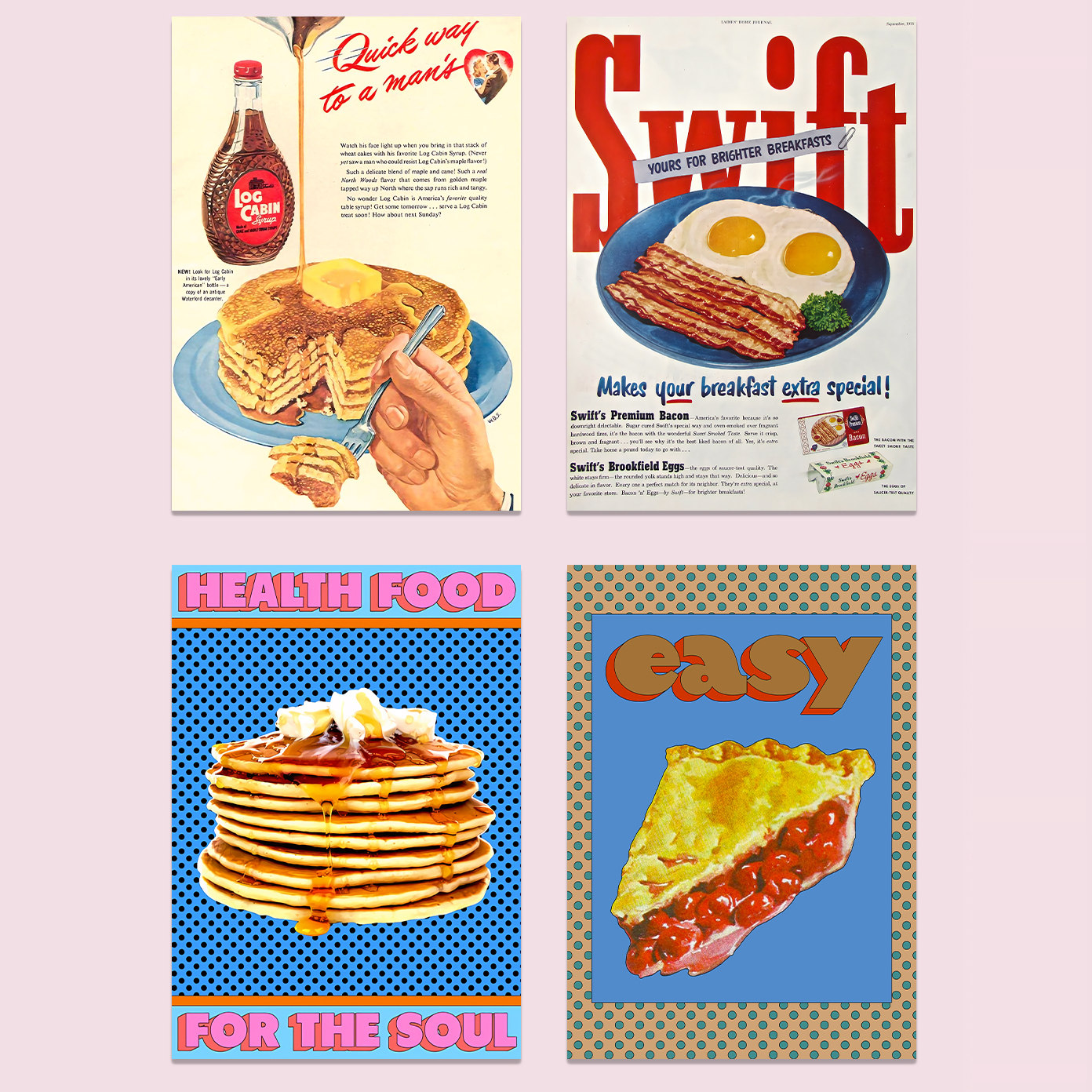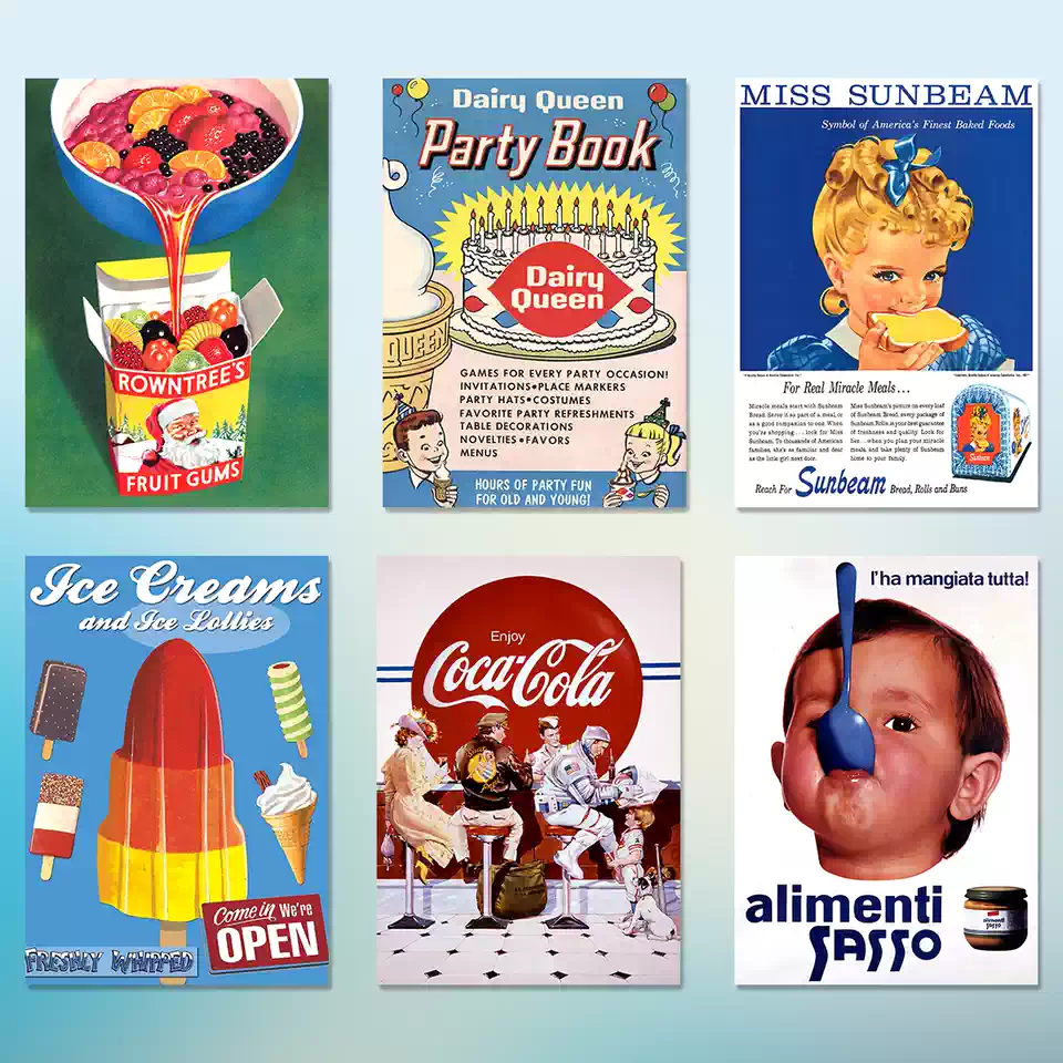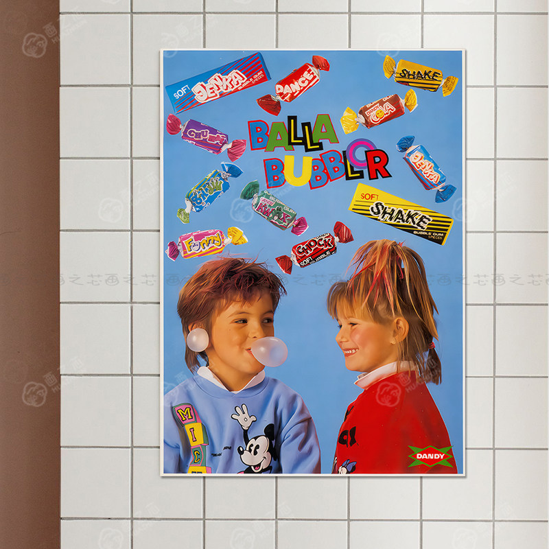 美式复古食物海报ins混搭风卡通趣味壁纸餐厅卧室装饰画画芯自粘