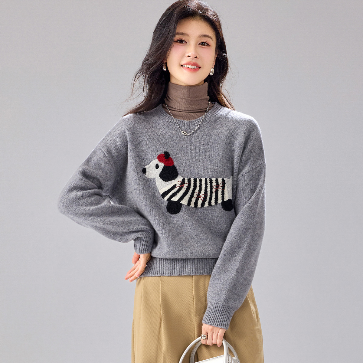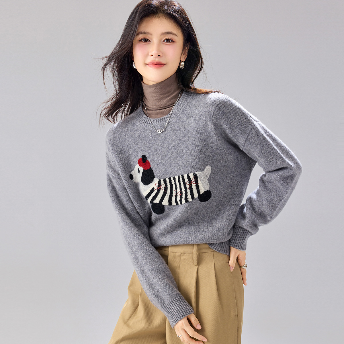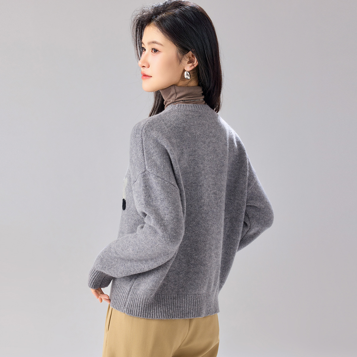 金菊【100%绵羊毛】2025秋冬新品卡通提花宽松女式羊毛衫