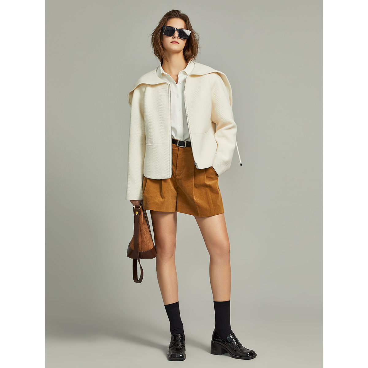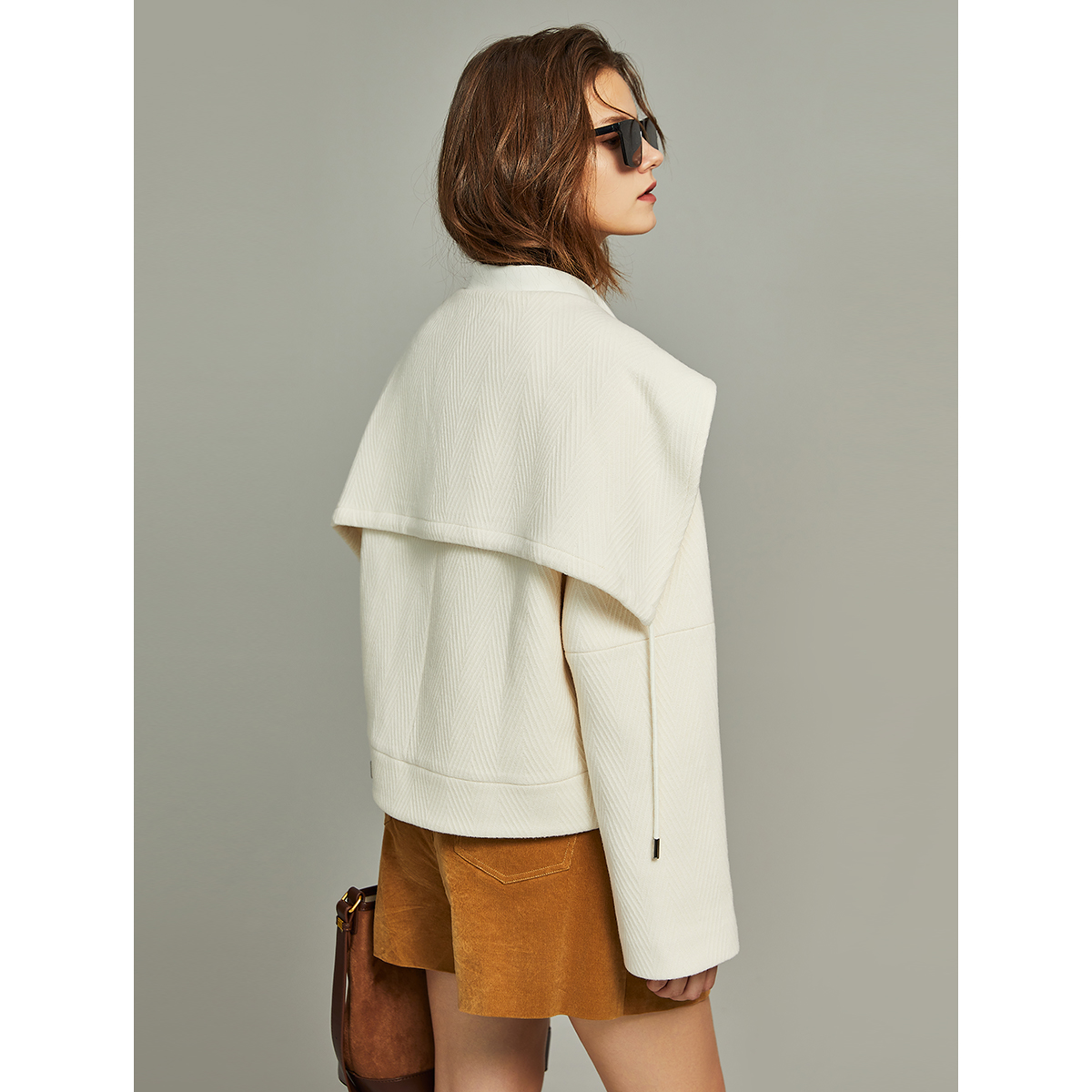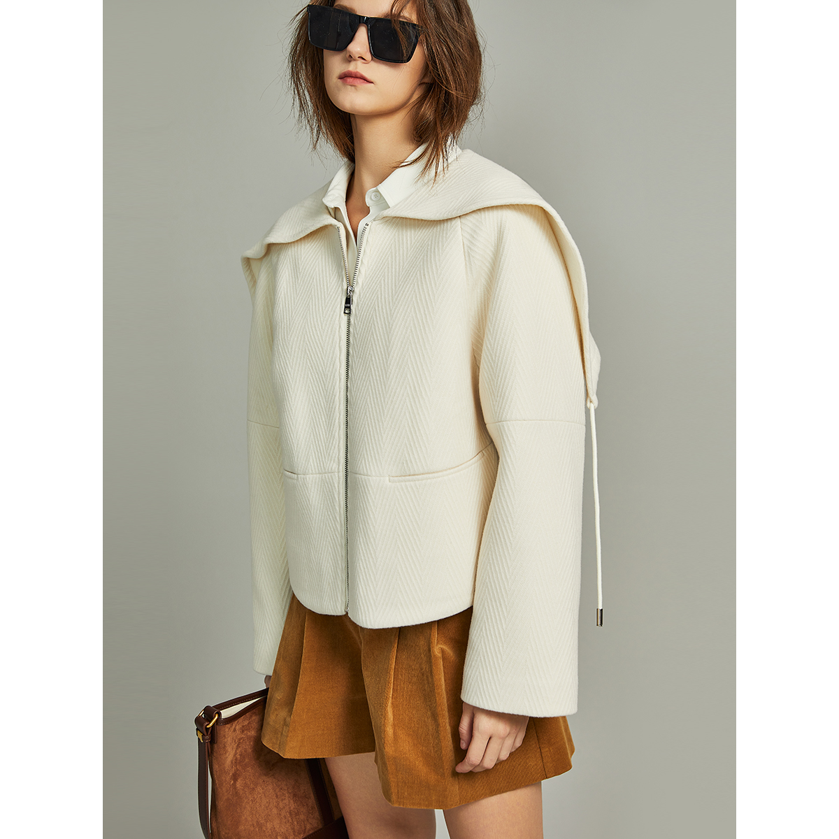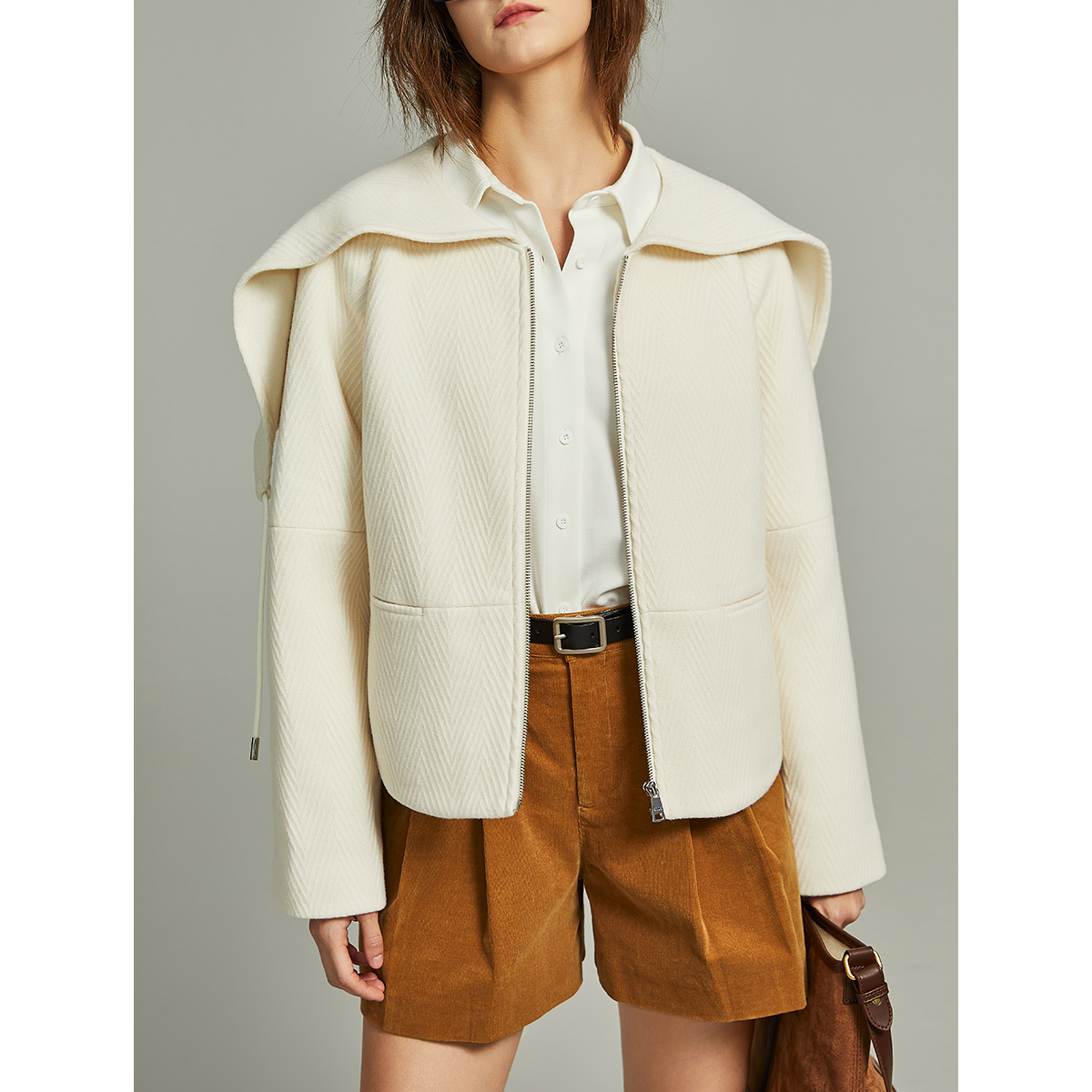 ELLE米白色短款毛呢外套女2025冬新款小个子高级感超好看呢子大衣
