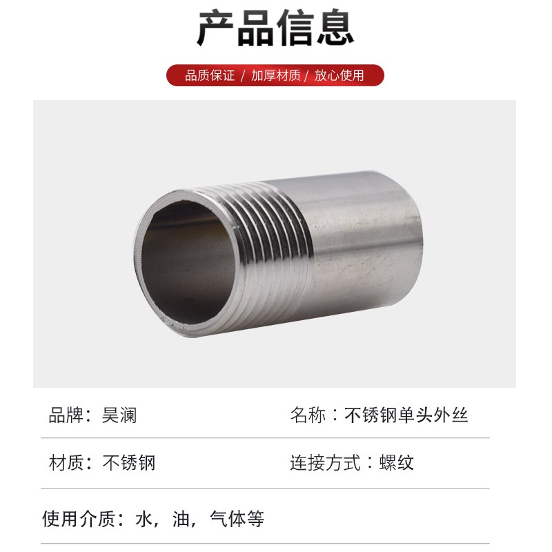 201不锈钢单头丝50长焊接加长单头外丝外螺纹直接2分3分4分6分1寸
