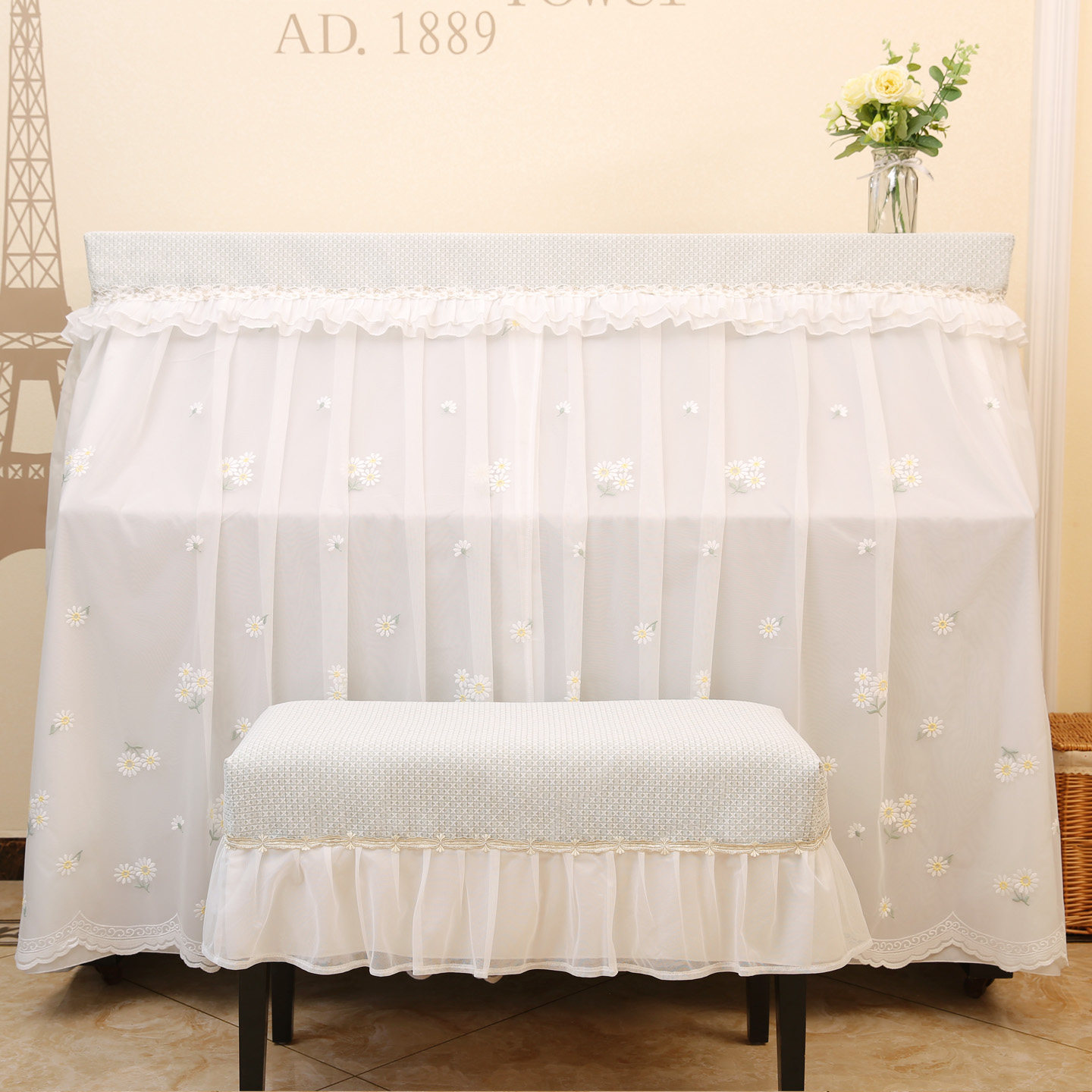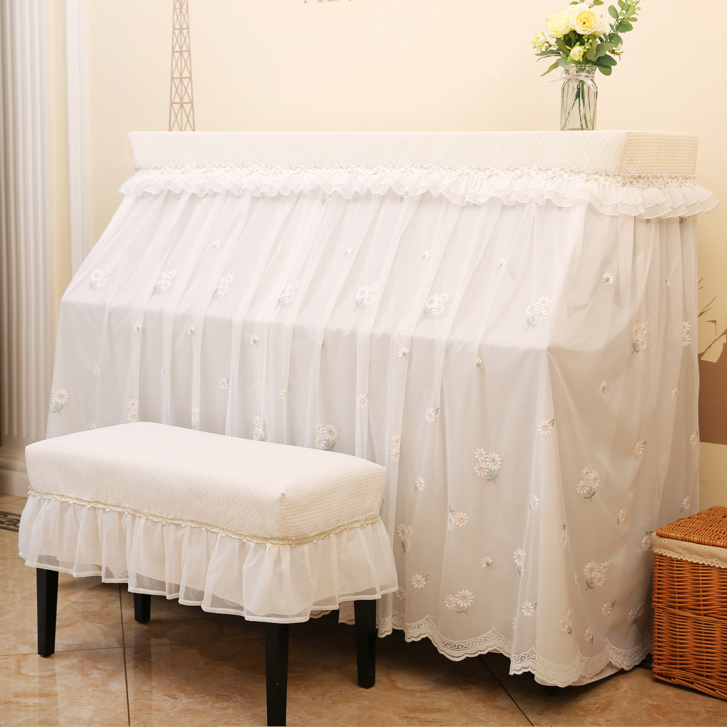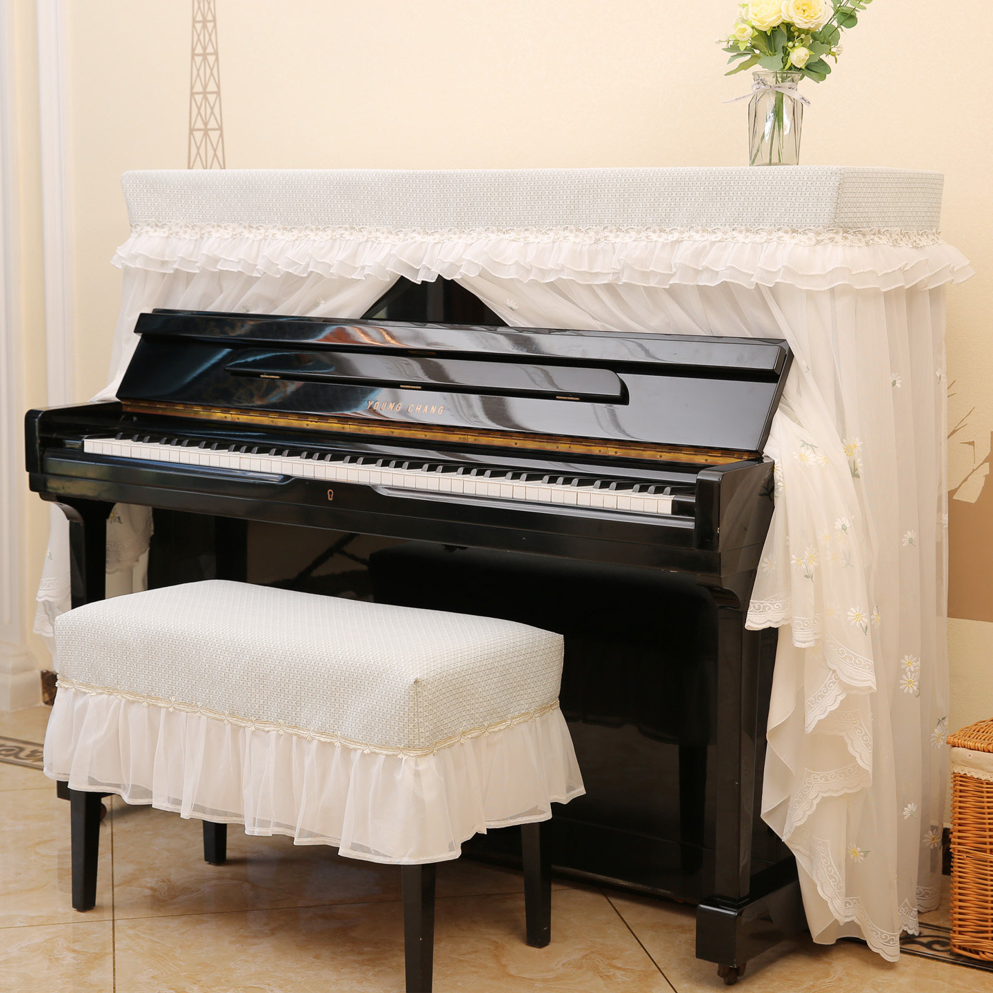 现代简约钢琴罩全罩防尘套北欧轻奢钢琴套蕾丝全包布艺盖布凳罩