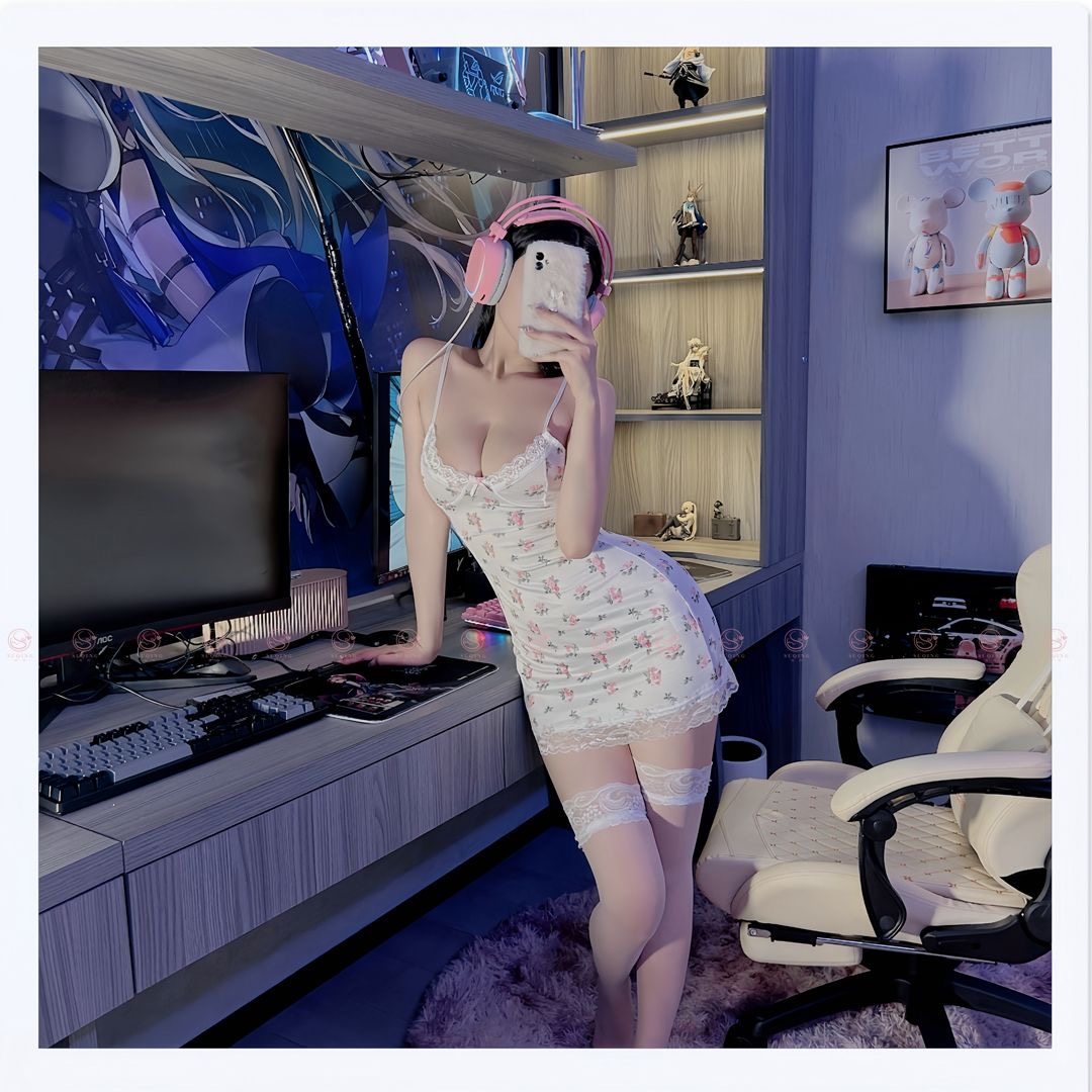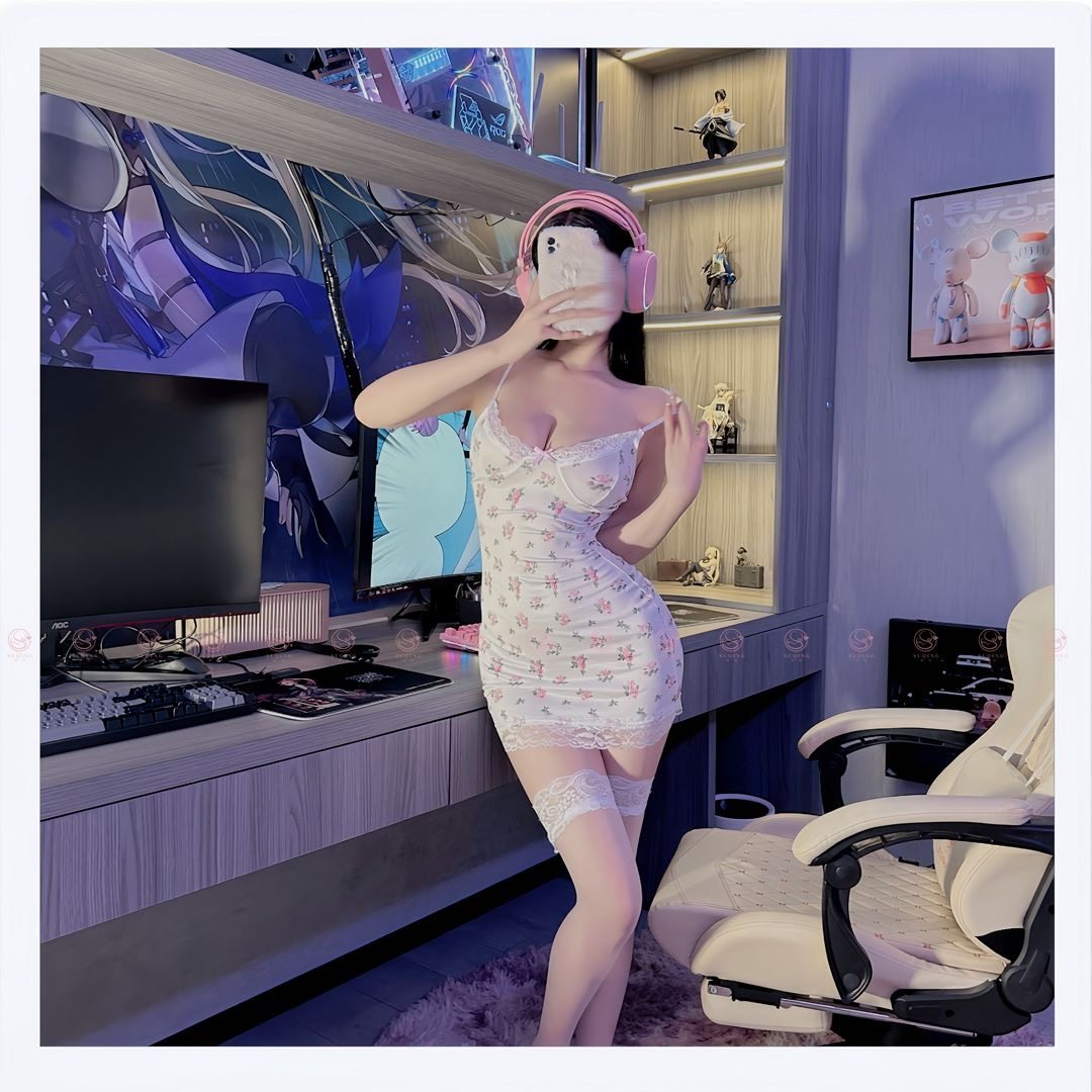 纯欲辣妹性感碎花蕾丝吊带背心无袖连衣裙女带胸垫修身收腰包臀裙