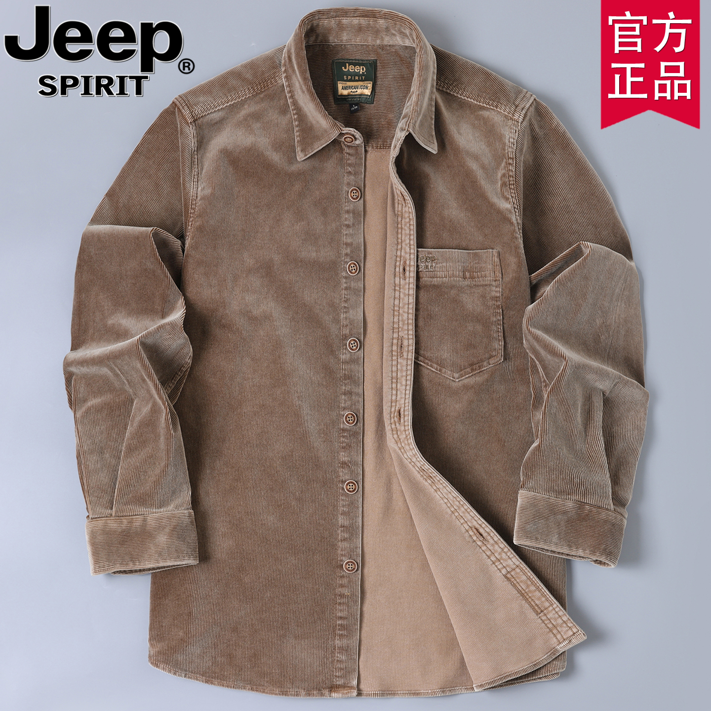 jeep官方正品灯芯绒纯棉衬衫男士