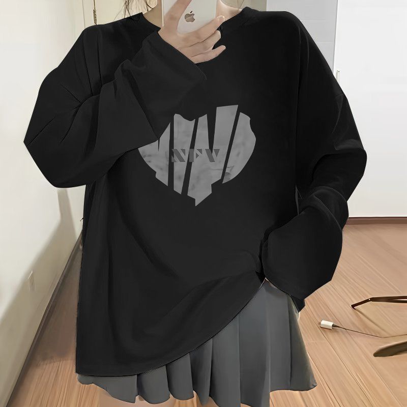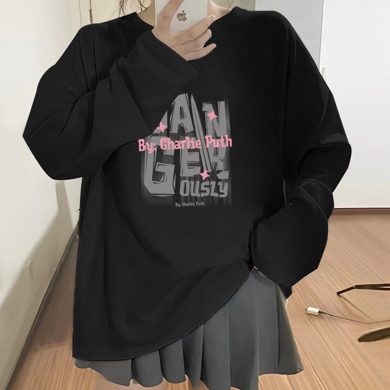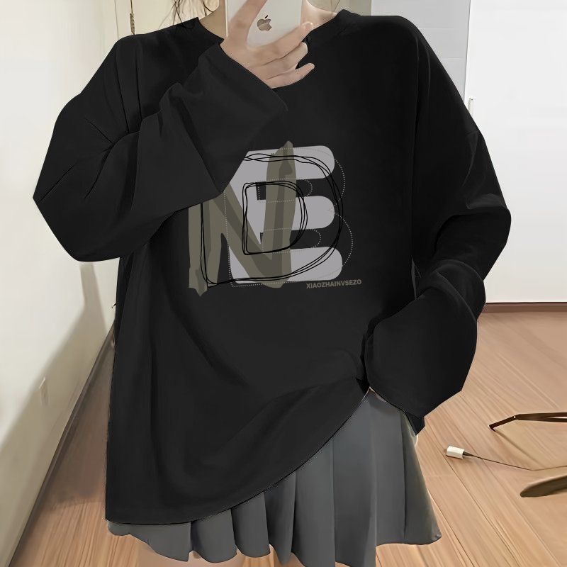 中长款黑色小众韩版百搭休闲风秋季新款长袖T恤女生宽松显瘦上衣