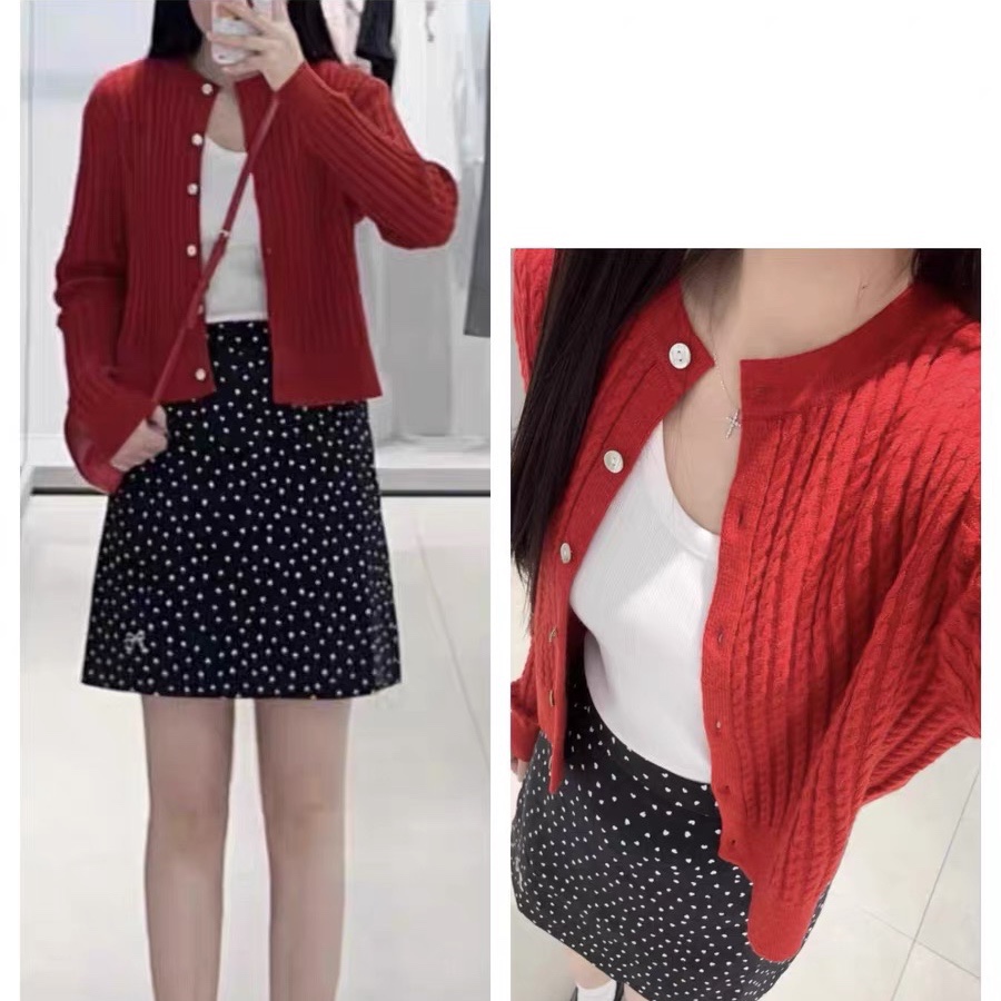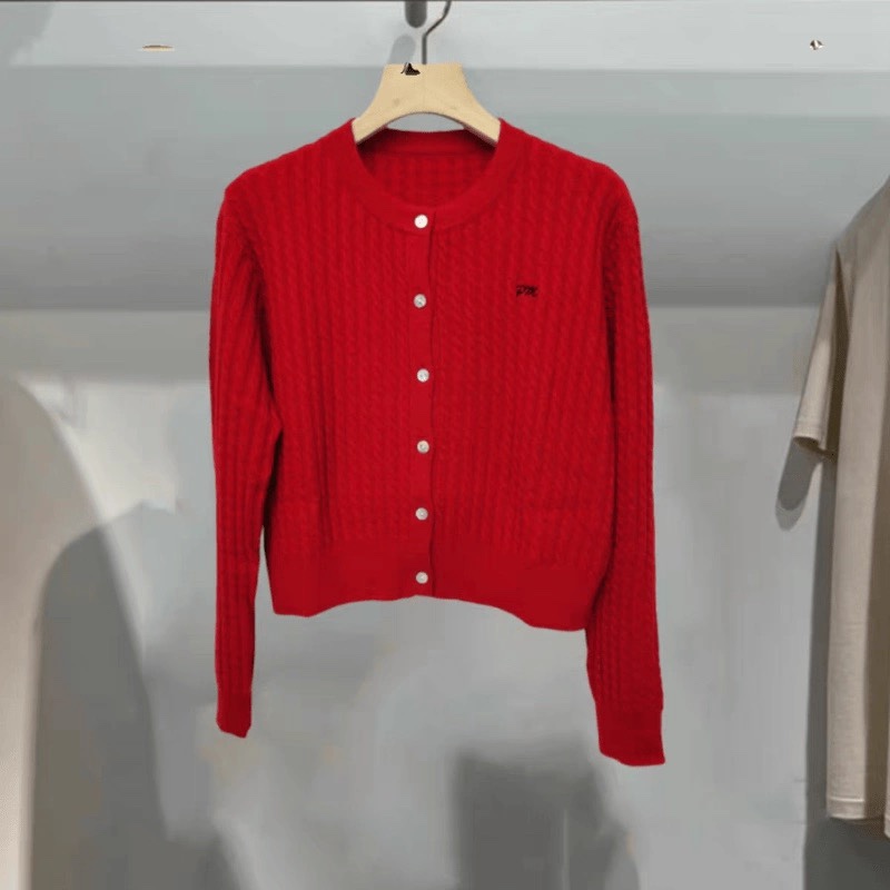 针织衫 圆领字母刺绣麻花纹设计短款单排扣休闲百搭开衫 毛衣0.20