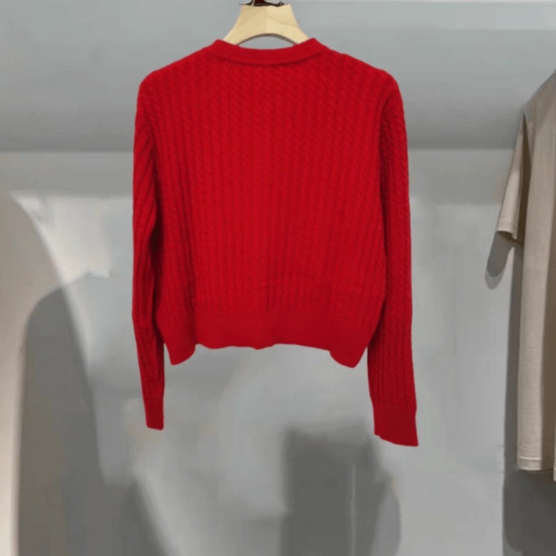 圆领字母刺绣麻花纹短款休闲开衫