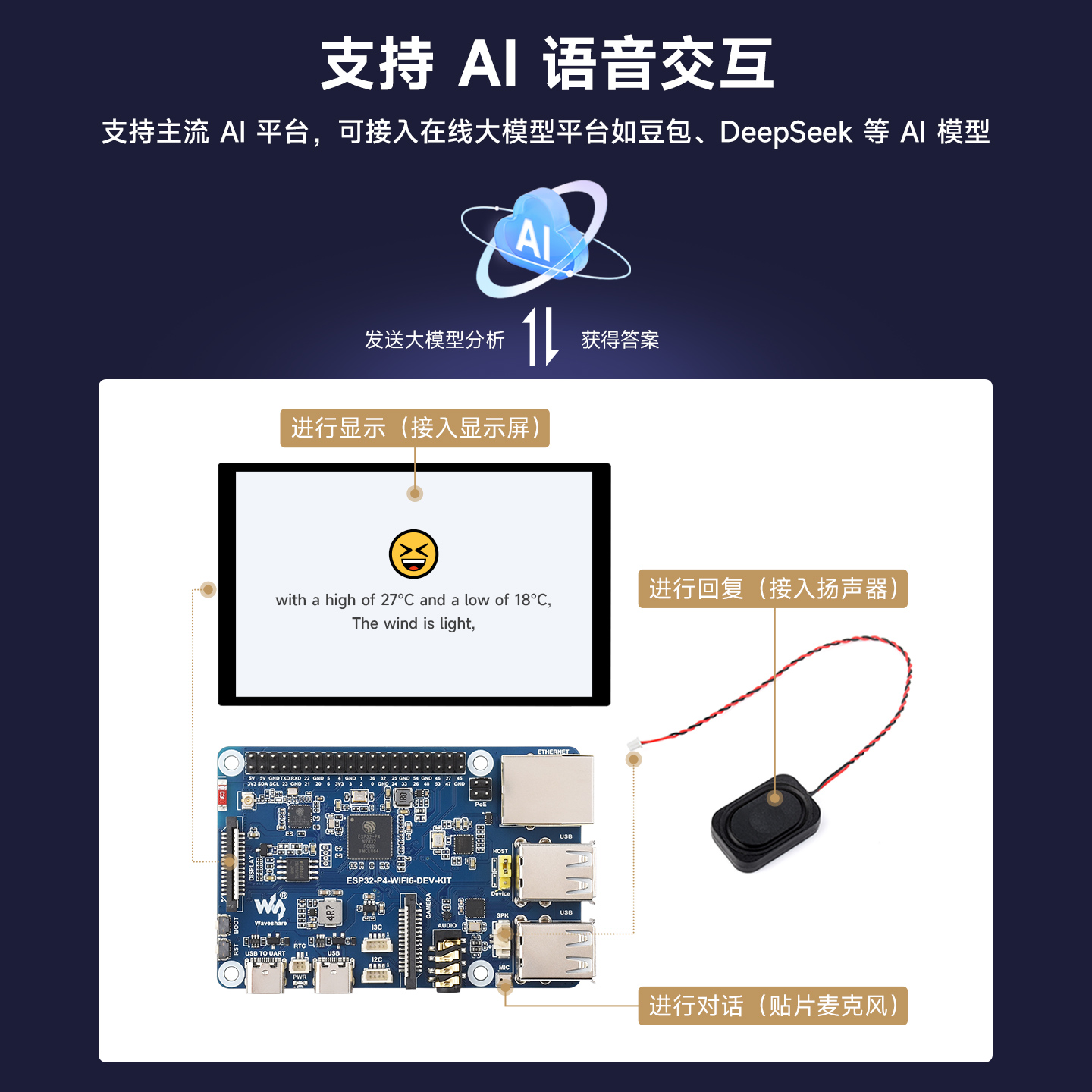 微雪 ESP32-P4开发板WiFi 6蓝牙通信集成ESP32-C6支持AI语音交互