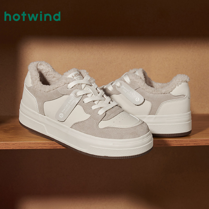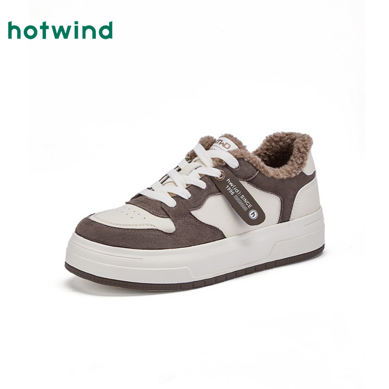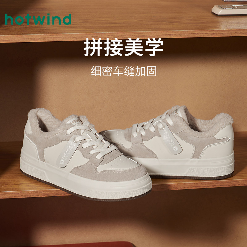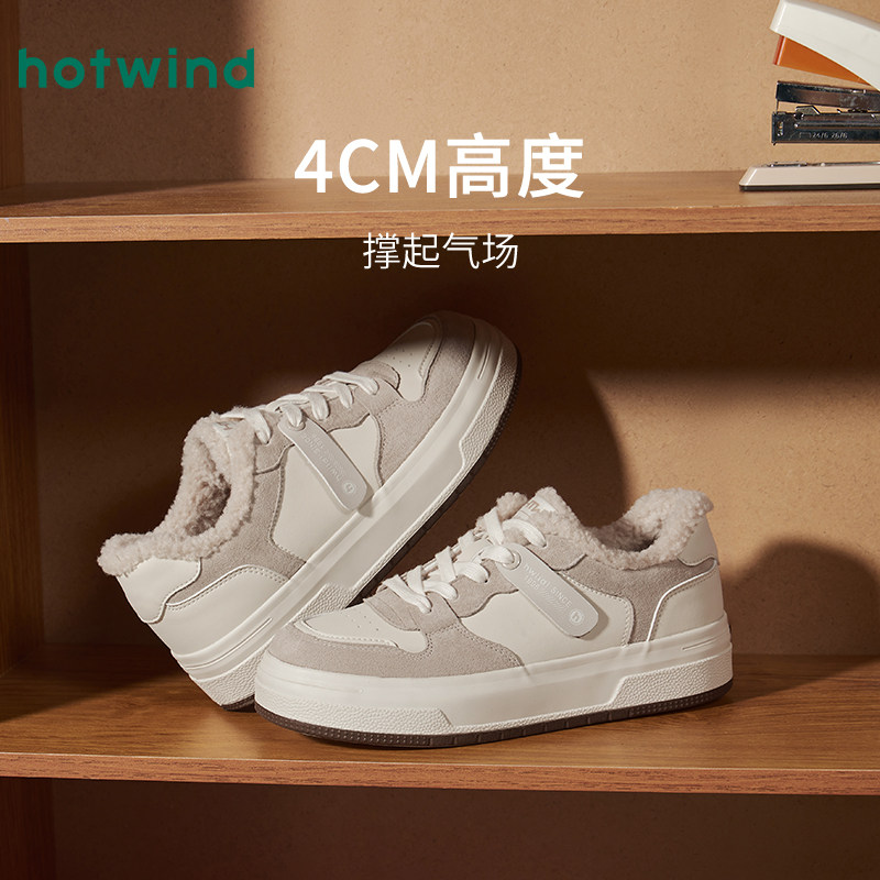 热风厚底板鞋女款2025年冬季新款加绒保暖休闲鞋增高面包鞋女鞋子