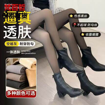 加绒加厚黑透肤连体袜女大码打底裤女防勾丝袜透肤连裤袜打底裤