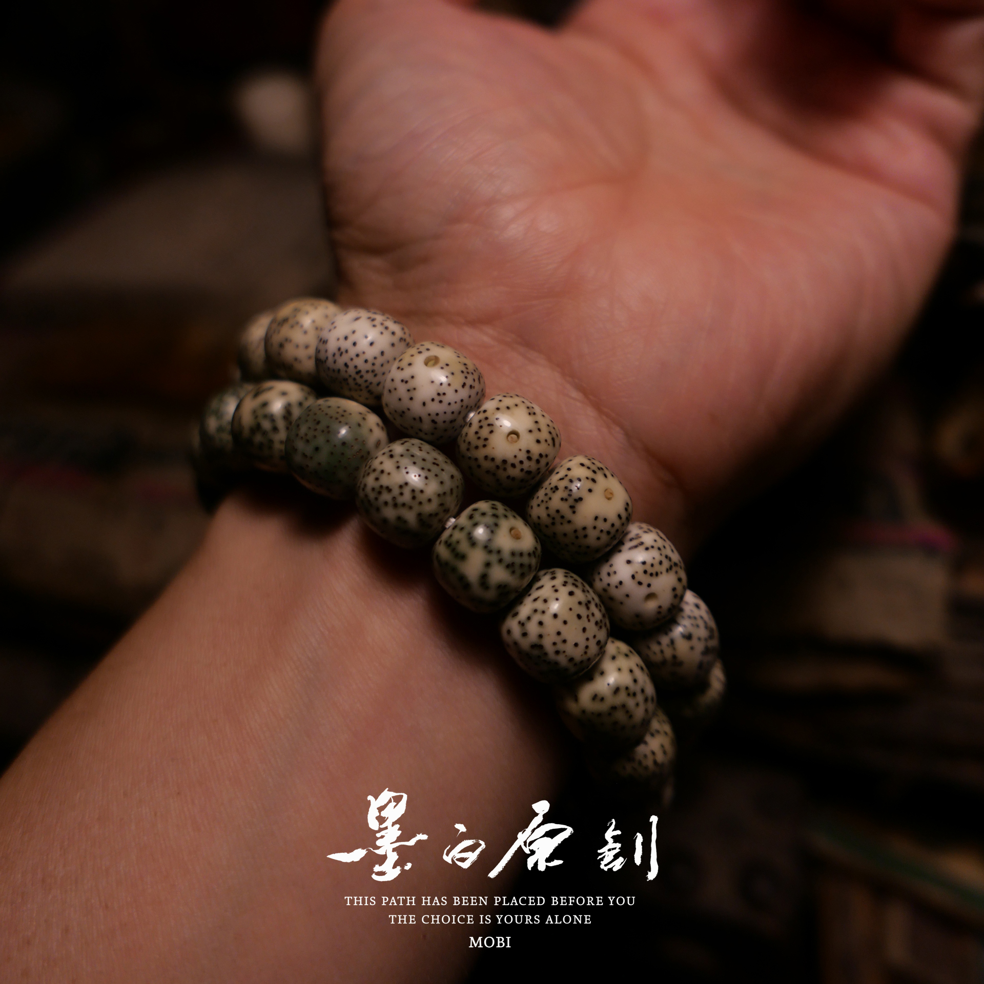 「墨白」玉石料润透青花瓷海南毛感星月菩提子高密干磨手串佛珠