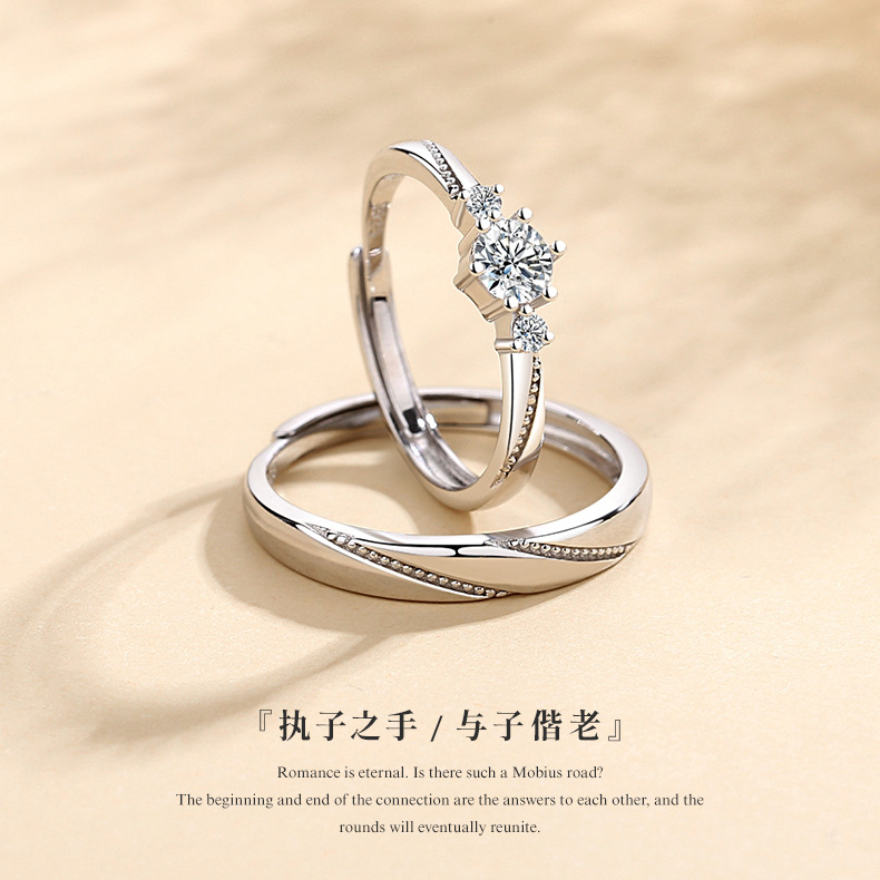 结婚仿真钻戒一对可调节求婚戒子指星织活口婚场摆台订婚对戒礼盒