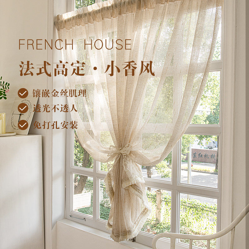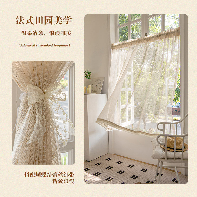 法式轻奢窗帘短帘窗纱客厅法式美式蕾丝厨房飘窗门帘隔断卧室纱帘