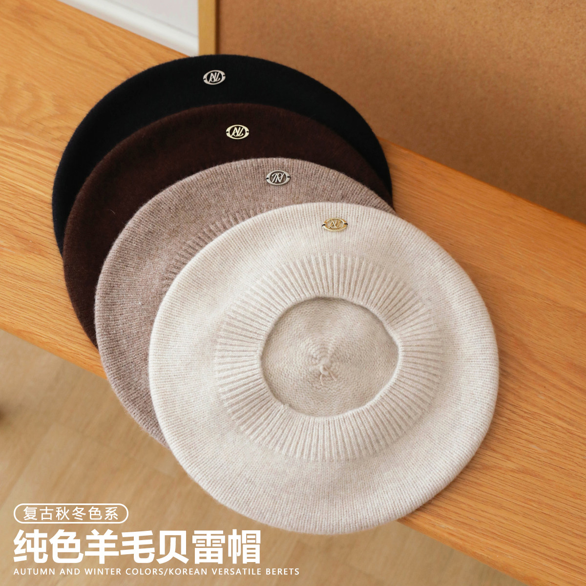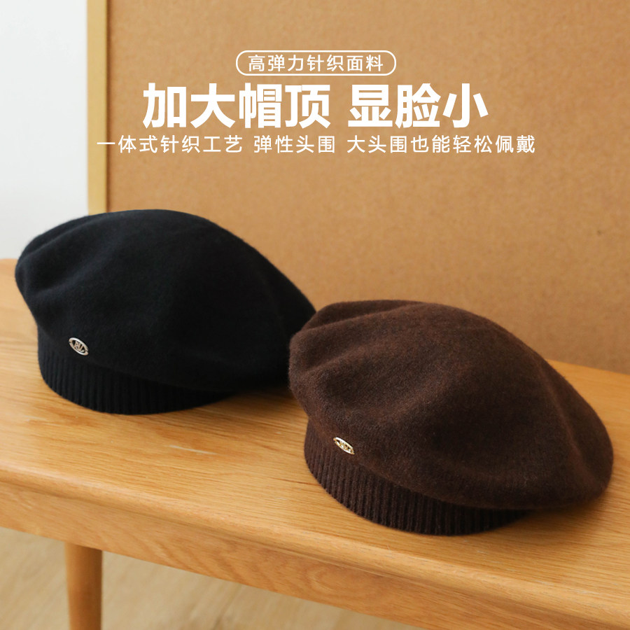 气质纯色羊毛贝雷帽女生韩系百搭蓓蕾画家帽秋冬软糯针织毛线帽子