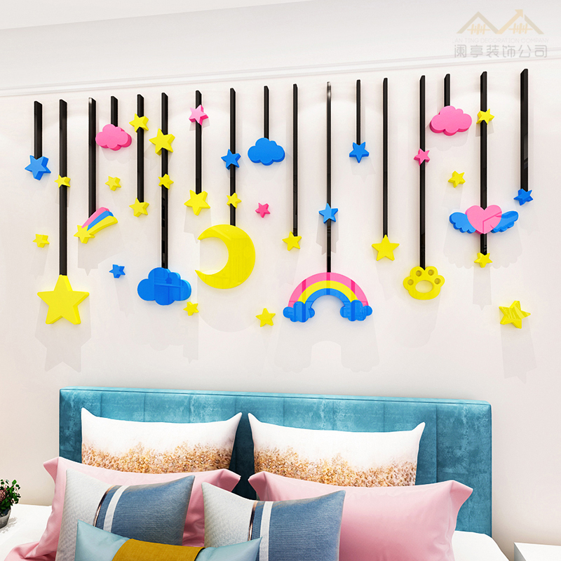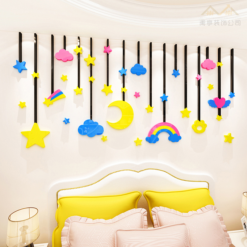 卡通星星月亮墙贴亚克力3d立体儿童房间布置卧室床头墙面装饰贴画