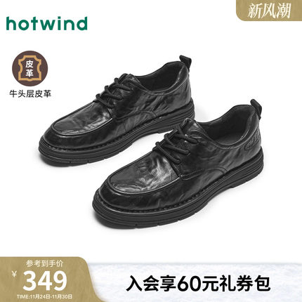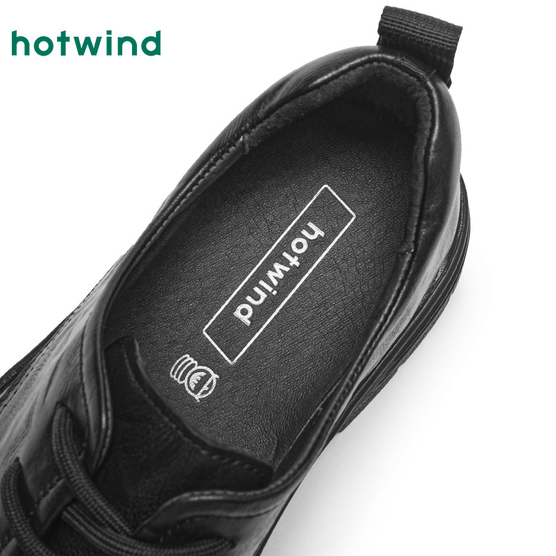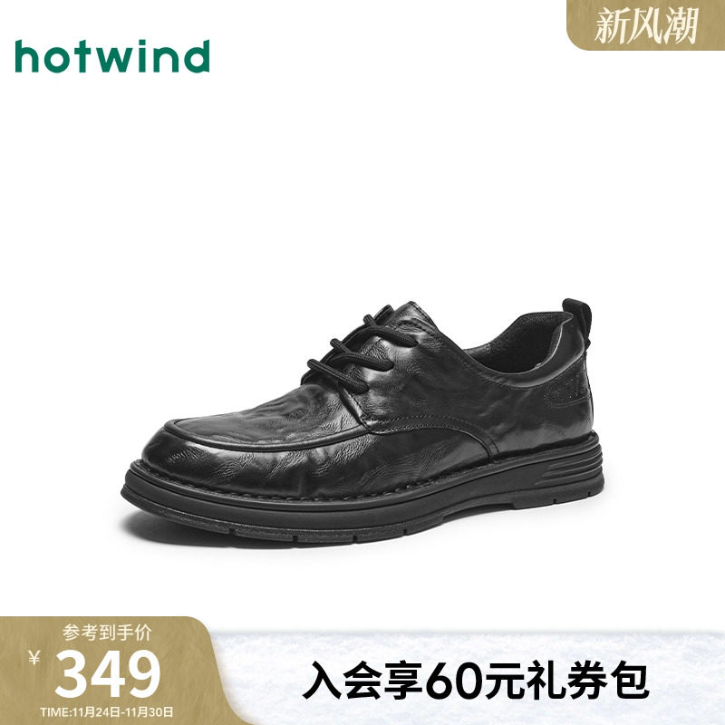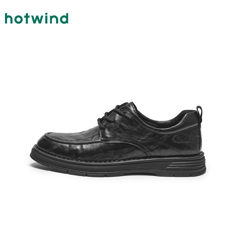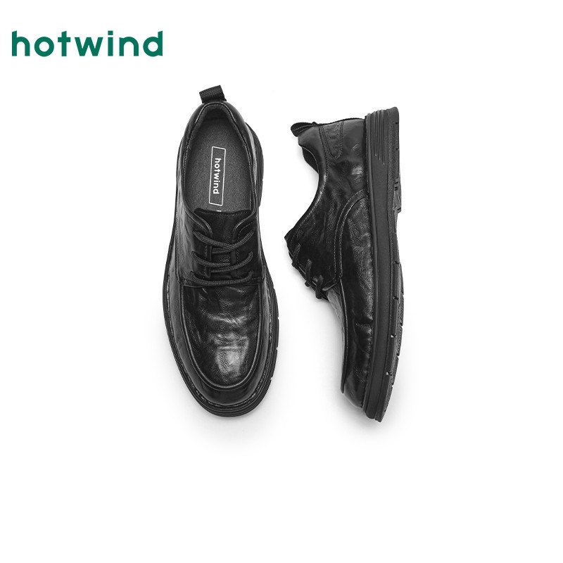 热风男鞋春季新款休闲皮鞋男士时尚休闲鞋圆头系带舒适爸爸潮鞋子