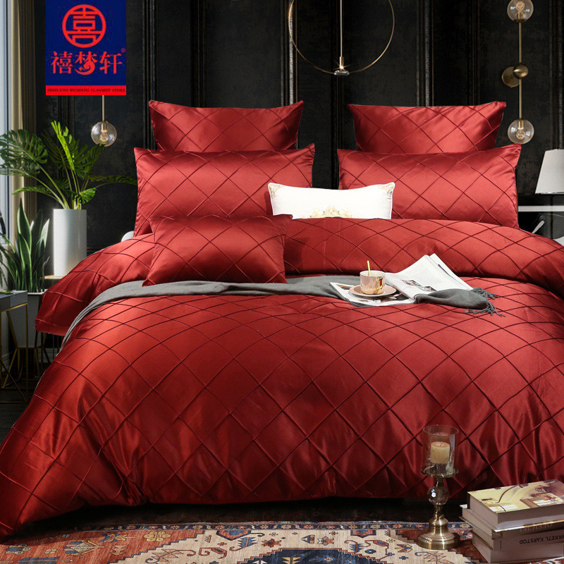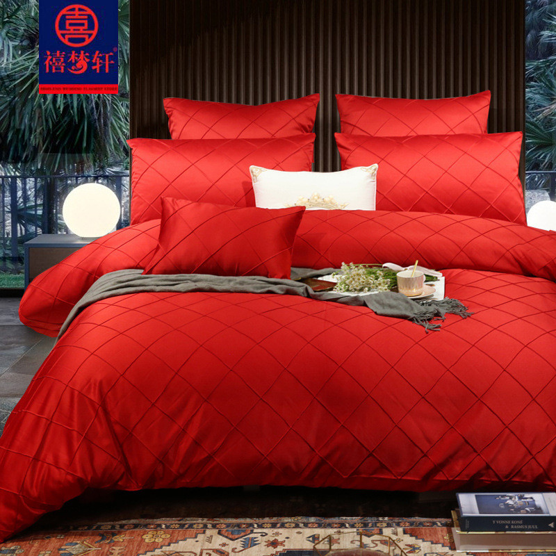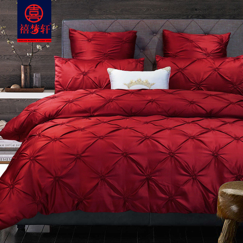 5dbj批发欧式全棉大红色婚庆四件套贡缎时尚婚床品新婚结床上用品