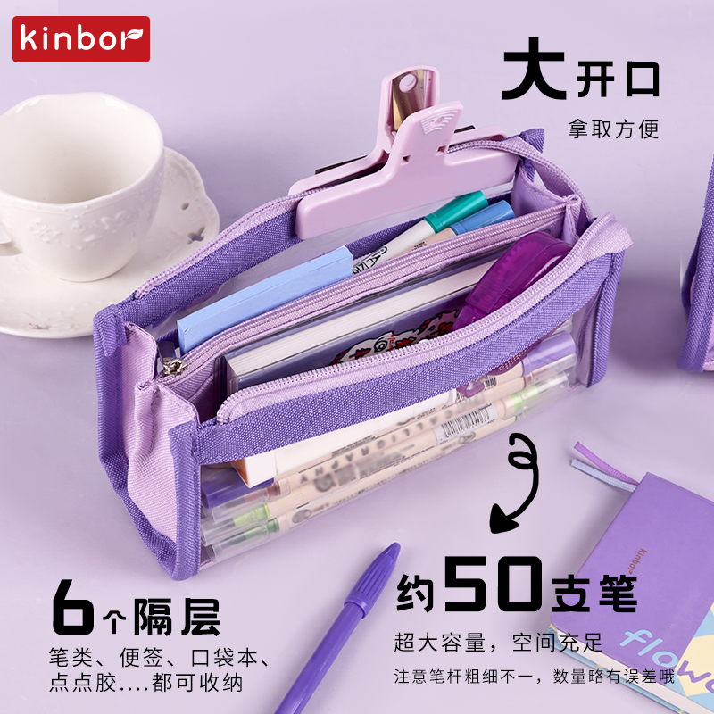 kinbor多巴胺三层大容量透明笔袋男孩2025年新款初中生铅笔盒小学生高中学生女生高颜值简约痛包文具盒男款