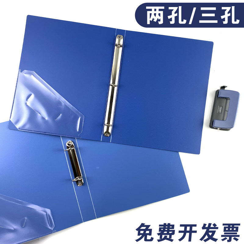 A4三孔夹两二孔夹O型夹塑料办公文件资料收纳整理收藏夹打孔文件夹11孔袋活页夹子多功能3多2双孔文件夹蓝色